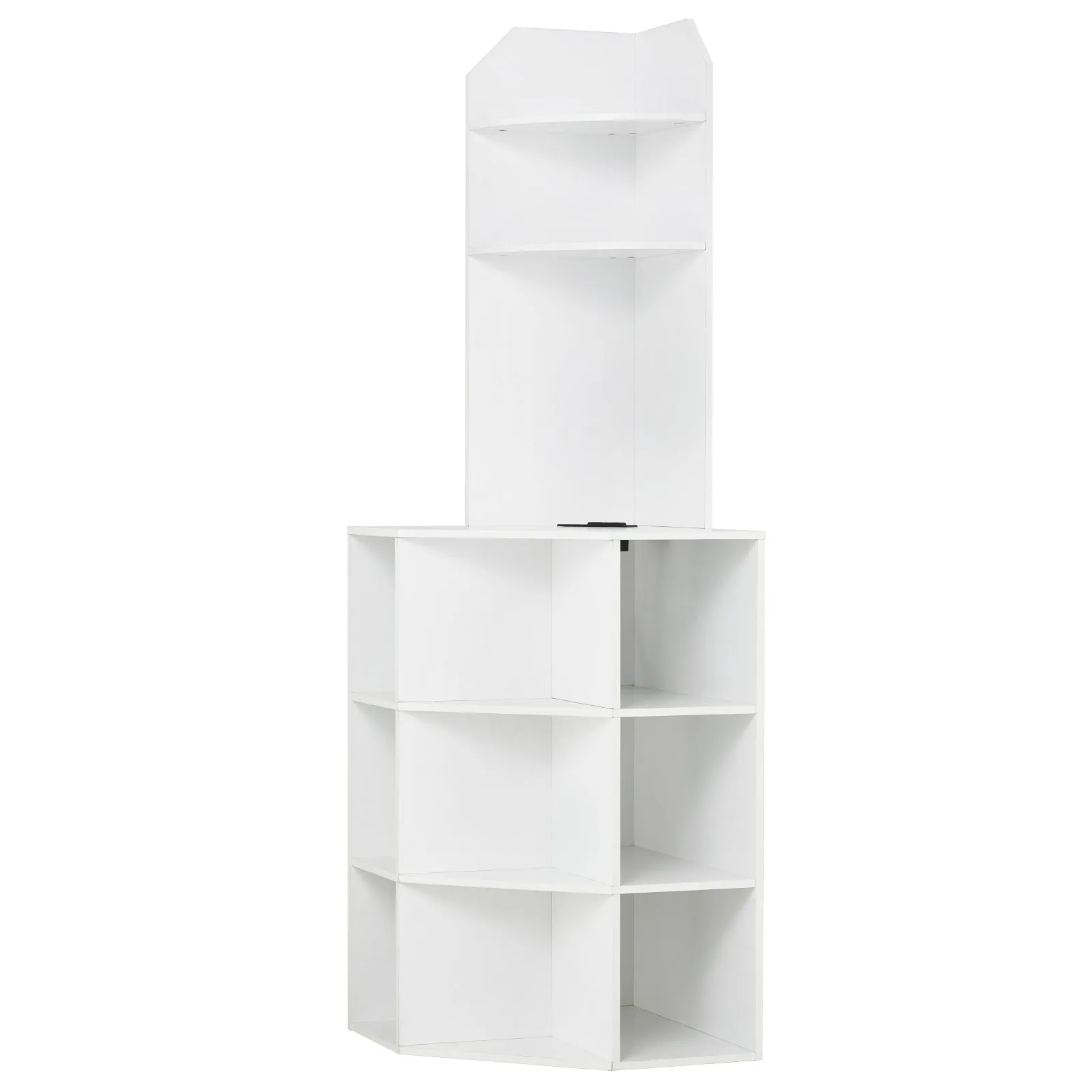 Rohová úložná skrinka so 6-úrovňovými policami, viacúčelová skrinka (výška 1626 mm) s USB portami a zásuvkami a nastaviteľnými policami, kuchynská skrinka do obývačky, práčovne