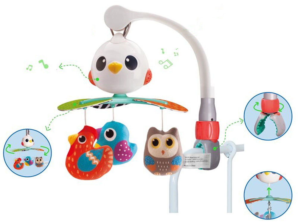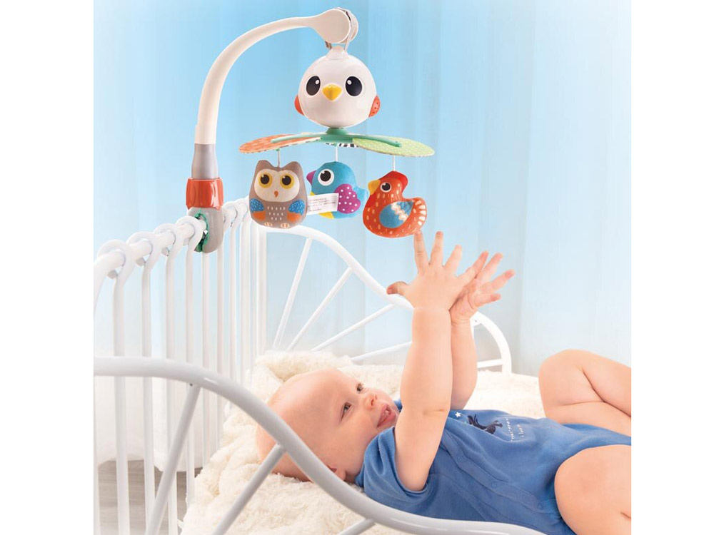 Už od prvých dní života bábätká postupne objavujú svet okolo seba, postavičky a zvuky. Otočný kolotoč s upokojujúcim zvukom a pôvabnými príveskami poskytuje vášmu drobcovi prvú sluchovú, vizuálnu a hmatovú stimuláciu. Stačí zavesiť kolotoč nad postieľku, autosedačku alebo kočík a vaše dieťatko sa oň začne zaujímať.