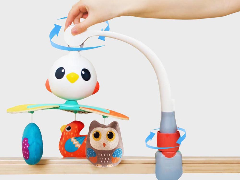 Tento pôvabný hudobný kolotoč pre bábätká, určený na zavesenie nad postieľku, kočík alebo autosedačku, bude užitočným spoločníkom už od prvých dní starostlivosti.