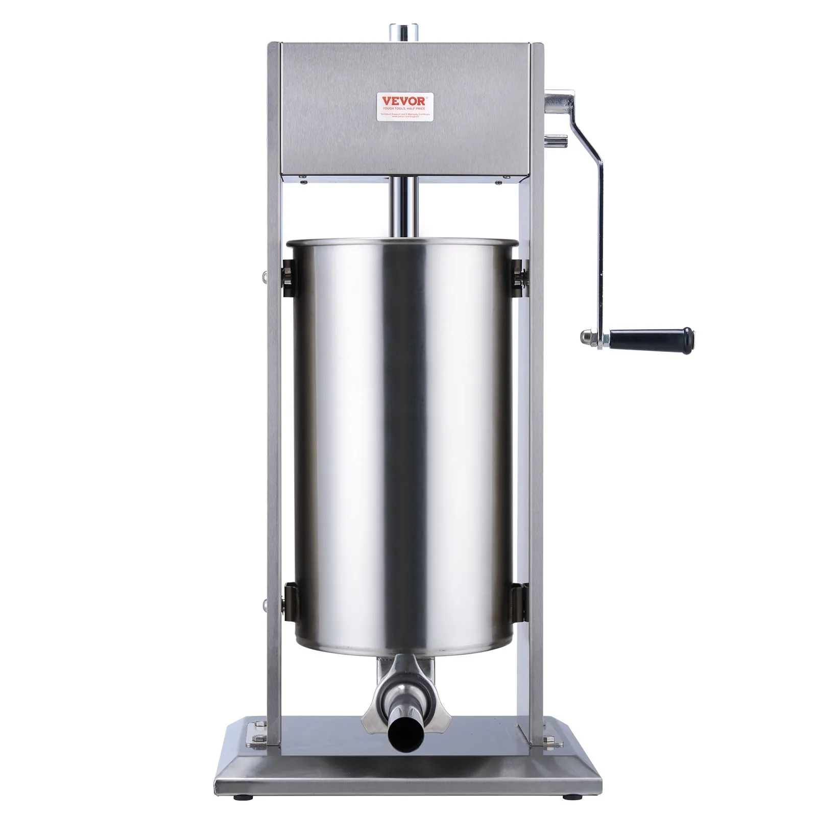 Ručná plnička klobás, vertikálny stroj na klobásy s objemom 15 l / 30 lb, dvojrýchlostná plnička mäsa, nehrdzavejúca oceľ potravinárskej kvality 304, obsahuje 5 plniacich trubíc, pre domáce, kuchynské, reštauračné a komerčné použitie