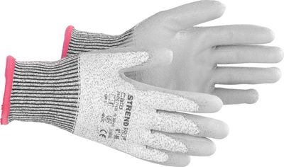 Rukavice Strend Pro Cato sú bezšvové protiporezové ochranné rukavice vyrobené z 13G HPPE a sklolaminátu s vynikajúcou odolnosťou proti oderu a porezaniu ostrím. Dlaň a prsty sú potiahnuté vrstvou sivého polyuretánu. Práca v týchto rukaviciach je komfortná, keďže sú priedušné, majú vynikajúcu priľnavosť v suchých podmienkach a poskytujú vynikajúci cit v prstoch. Sú určené na ochranu kože pred mechanickými rizikami, s úrovňou ochrany 4X43C (podľa EN388: 2016+A1:2018). Veľkosť: 09″/L. Balenie obsahuje 12 párov rukavíc