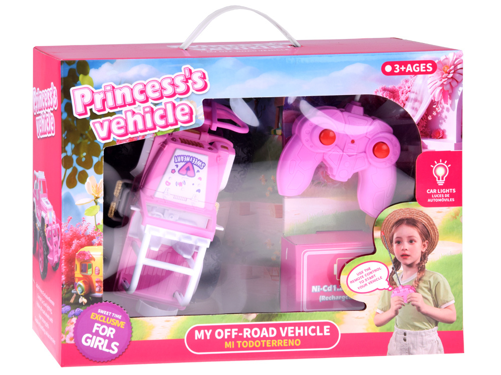 Toto ružové diaľkovo ovládané terénne vozidlo je splneným snom každej malej princeznej! Vozidlo princeznej je jedinečná hračka, ktorá kombinuje atraktívny dizajn s dynamickou hrou. Vďaka diaľkovému ovládaču v tvare podložky deti ľahko ovládajú vozidlo, čím rozvíjajú koordináciu a reflexy.