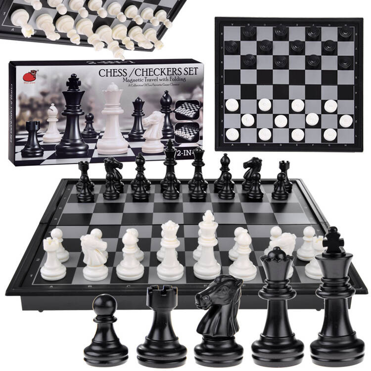 Sada magnetických šachových a dámových figúrok 2 v 1 je najobľúbenejšou a svetoznámou spoločenskou hrou. Sada obsahuje šachové figúrky a dámové figúrky a elegantnú plastovú krabičku, ktorá po rozložení slúži aj ako hracia doska. Balenie nie je veľmi objemné a vďaka ľahkej konštrukcii nie je sada ťažká – môžete si ju vziať kamkoľvek, vďaka čomu je ideálna na cesty. Vďaka magnetickým šachovým figúrkam a hracej doske môžete začať hrať aj v aute, autobuse, vlaku, záhrade, na pikniku atď.