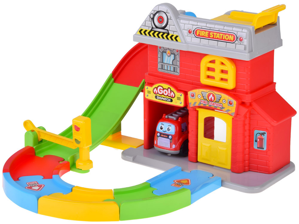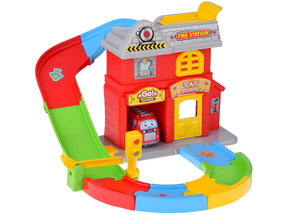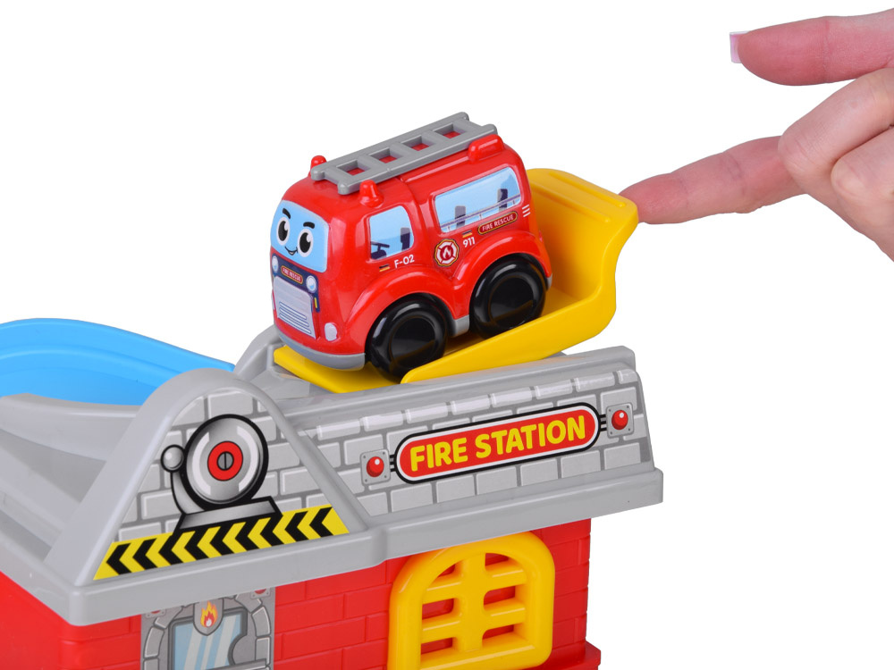 Táto jedinečná hračka deťom nielen poskytne kopec zábavy, ale aj podporí ich rozvoj. Farebná budova hasičskej stanice s dynamickou špirálovou dráhou umožňuje deťom sledovať hasičské auto, ktoré sa rúti z kopca a je pripravené na záchranu.