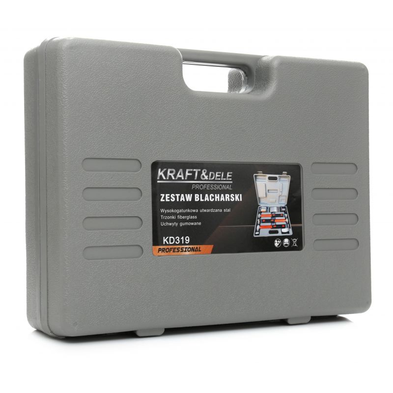 Klampiarska súprava Kraft&Dele KD319 obsahuje 4 nákovy (vypuklé, háčikové, oblúkové a viacúčelové), ako aj 3 kladivá s charakteristickými pracovnými rovinami s profilovanou rukoväťou zo sklenených vlákien (dodatočne pokryté gumovým poťahom).