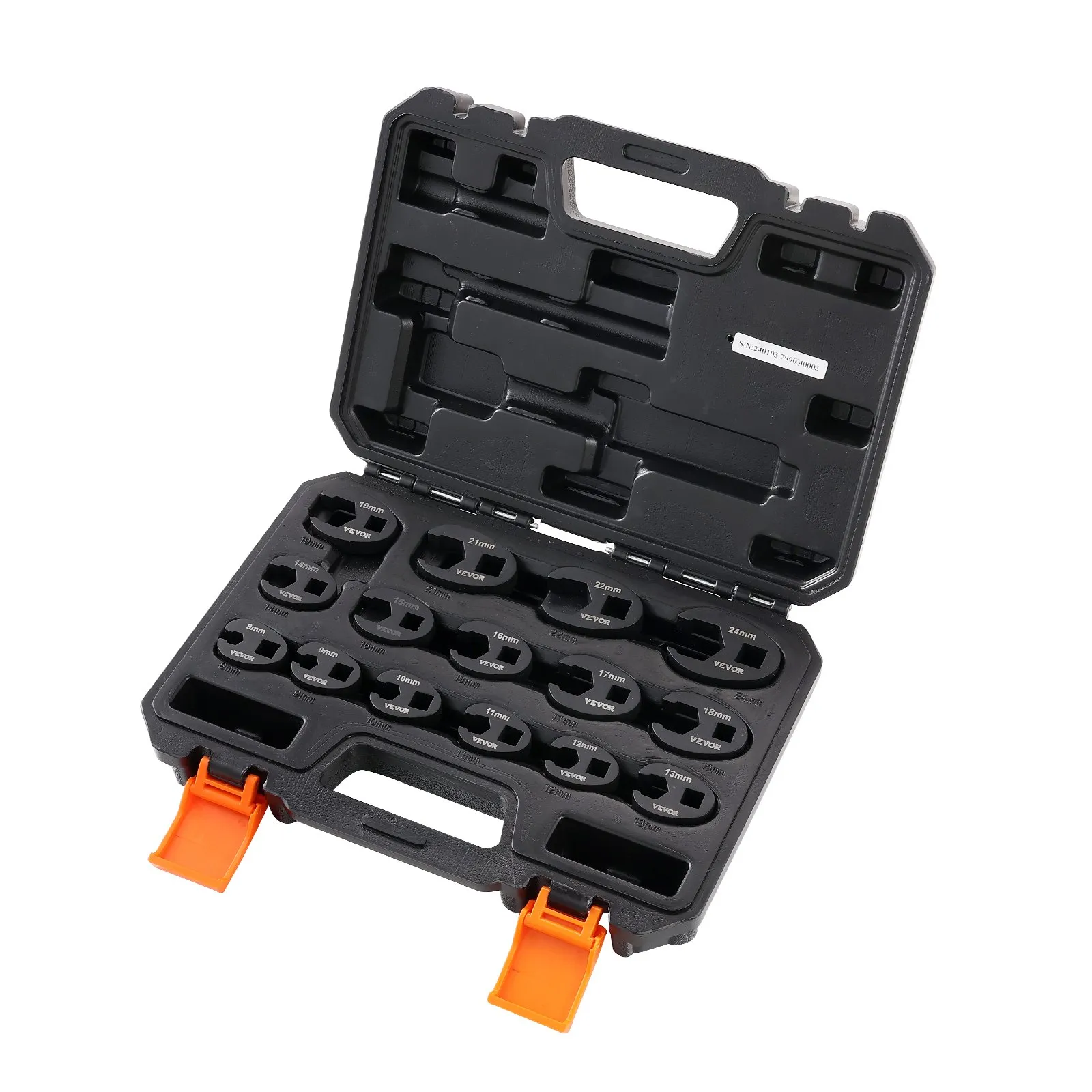 • Rôzne špecifikácie: Rôzne scenáre opráv vyžadujú rôzne veľkosti nástrojov. Naša sada kľúčov s dĺžkovou hranou obsahuje unášače s priemerom 3/8″: 8 mm, 9 mm, 10 mm, 11 mm, 12 mm, 13 mm, 14 mm, 15 mm, 16 mm, 17 mm, 18 mm a 19 mm, spolu 12 kusov, a unášače s priemerom 1/2″: 21 mm, 22 mm a 24 mm, spolu 3 kusy. To vám umožní ľahko manipulovať s rôznymi spojovacími prvkami a skrutkami a zaručí, že ste dobre vybavení na rôzne úlohy.