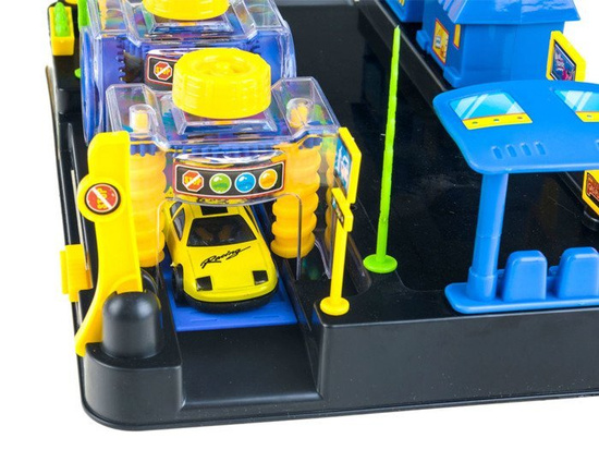 Táto fantasticky vybavená sada si získa mnohých vodičov. Keď sa vám auto zašpiní, návšteva autoumyvárne je nevyhnutnosťou a vaše vozidlo bude opäť ako nové. Ak vám dôjde benzín, môžete jednoducho natankovať na čerpacej stanici. Sada obsahuje príjazdovú cestu, autoumyváreň, palivové stojany, diagnostickú stanicu, dielňu a autíčka. Hra s touto sadou vám poskytne množstvo vzrušujúcej zábavy. Sada