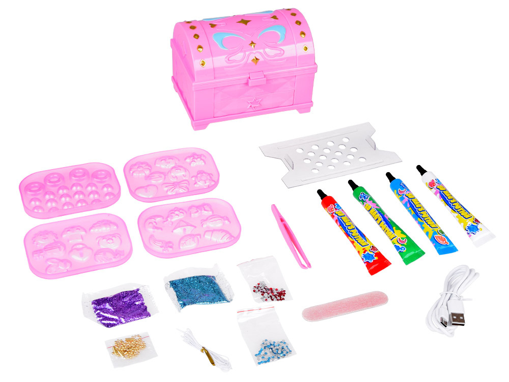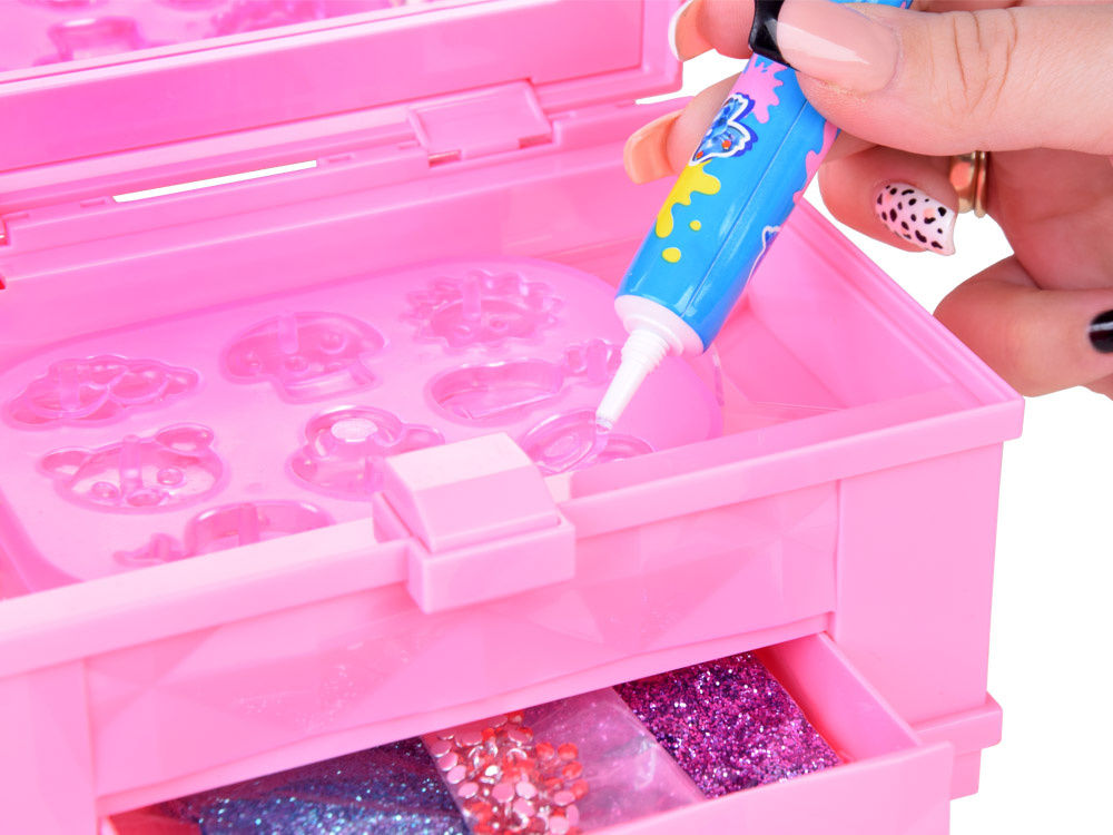 Sada korálok na výrobu vlastného jedinečného náramku alebo prsteňa poskytne každému dievčatku množstvo pozitívnej zábavy. Dievčatá, ktoré majú rady ručné práce, v tejto sade nájdu množstvo inšpirácie na tvorbu vlastných šperkov. A samozrejme, každý šperk, ktorý si sami vyrobíte, bude jedinečný. Sada obsahuje ružovú plastovú krabičku so zrkadlom, zásuvkou a magickým svetlom, ktoré umožňuje korálkam rýchlo schnúť. Krabička určite krásne vynikne v každej malej dizajnérskej izbe.