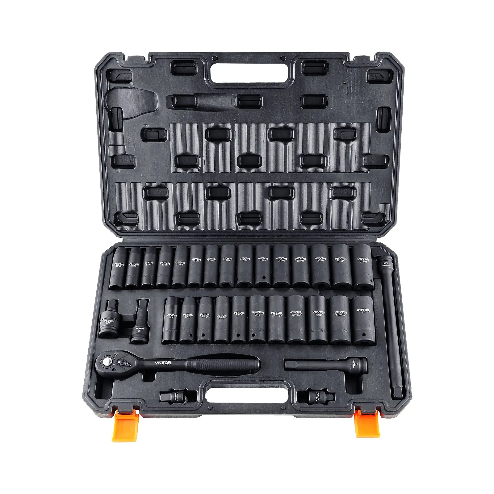 Priemyselná legovaná oceľ Cr-V: Naša sada rázových objímok 1/2″ vyrobená z priemyselnej legovanej ocele Cr-V je vyrobená z vysoko kvalitnej, nárazuvzdornej legovanej ocele, ktorá ponúka výnimočné zlepšenia v odolnosti voči nárazom a absorpcii. Vákuové tepelné spracovanie rýchlo zahrieva a ochladzuje oceľ, čo vedie k leštenému a mimoriadne odolnému povrchu. Vďaka tomu je vhodná pre širokú škálu aplikácií.