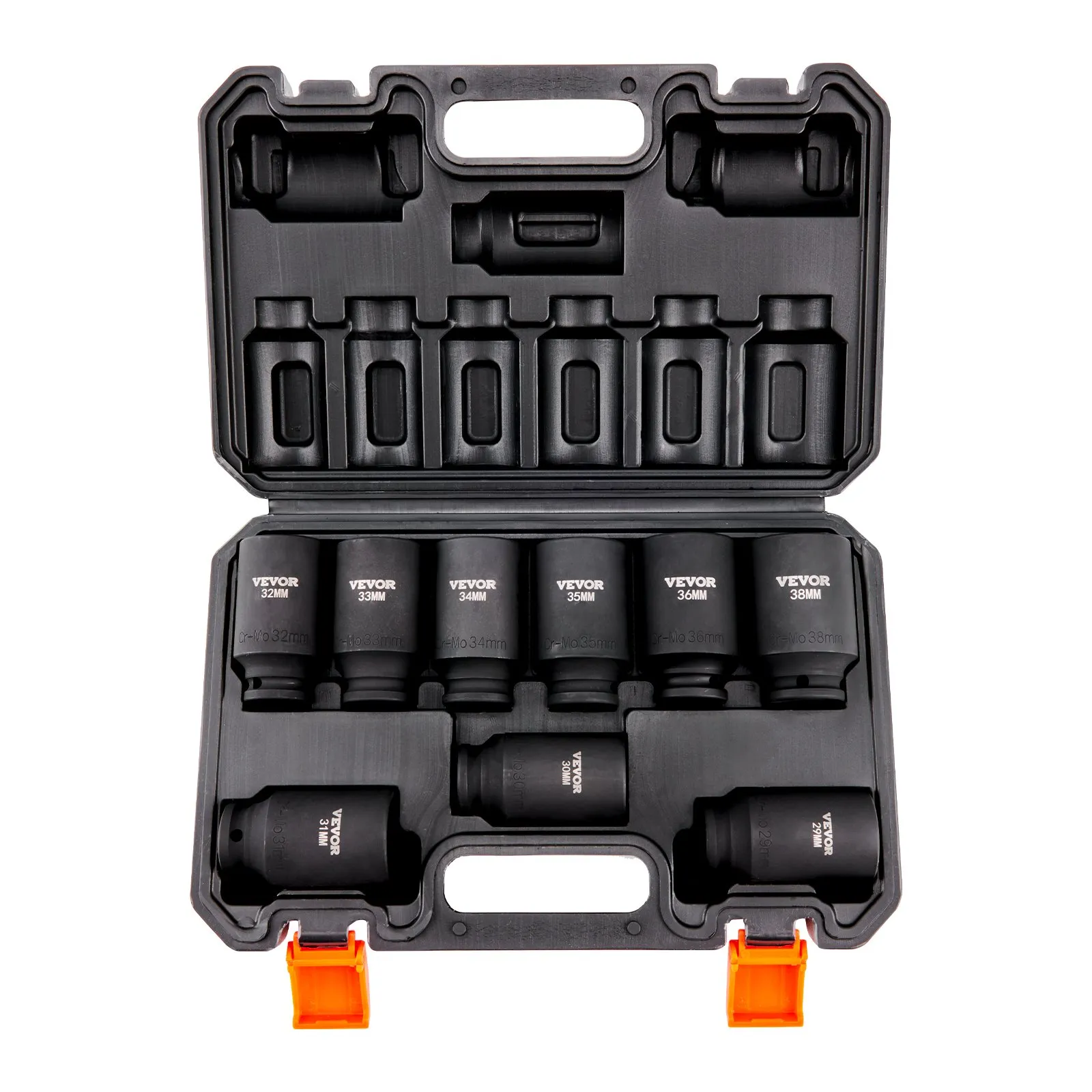 Rozsiahly obsah: Táto komplexná sada obsahuje 9 metrických 1/2-palcových nástrčných kľúčov s rozsahom veľkostí hlbokých kľúčov: 29 mm, 30 mm, 31 mm, 32 mm, 33 mm, 34 mm, 35 mm, 36 mm, 38 mm.