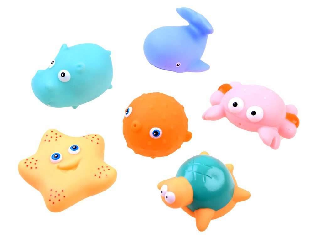 - 6 gumených zvieratiek.