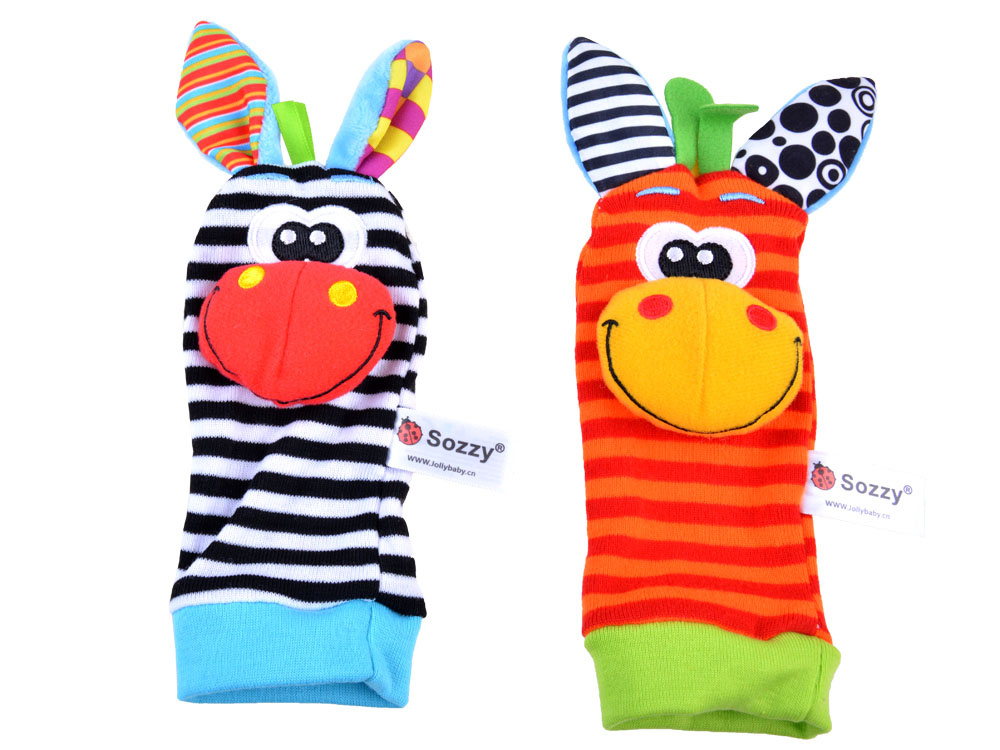 Hrkálka v tvare ponožky stimuluje viacero zmyslov: zrak, sluch a hmat.