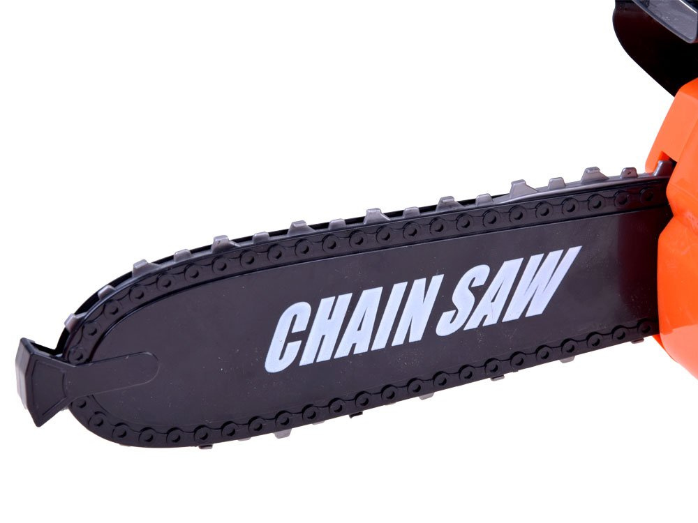 Po vložení batérií sa píla spustí stlačením malého čierneho tlačidla na ľavej strane a jemným potiahnutím za „štartovaciu šnúru“ umiestnenú na ľavej strane. Potom budete počuť, ako sa píla spustí, a potom, držte pílu za rukoväť, stlačte tlačidlo, čím sa reťaz uvedie do pohybu.  Vrčiaci zvuk, ktorý hračka vydáva, je veľmi realistický a určite osloví každého malého chlapca.