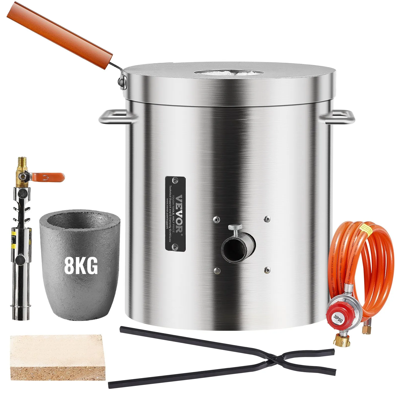 Sada propánových taviacich pecí, 8 kg plynová taviaca pec na kov, zlievárenská domáca pec s kliešťami na téglik, drevené rukoväte na tavenie zlata, striebra, medi, hliníka a kovov, recyklácia