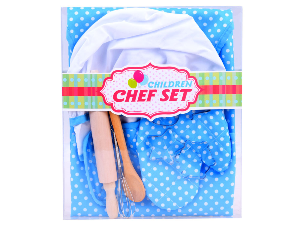 Táto pôvabná sada, určená pre každé dieťa, ktoré chce pomáhať v kuchyni, bude skvelým doplnkom každej domácnosti. Sada obsahuje zásteru, kuchársku čiapku, chňapku a kuchynské príslušenstvo (valček na cesto, lyžicu, vykrajovačky na sušienky a metličku). Malé deti milujú pomáhať rodičom s prípravou jedál a je to pre ne skvelý vzdelávací zážitok. Táto pôvabná kuchynská sada je ideálna na hodiny varenia. Oblečenie dieťaťa bude chránené a malý pomocník sa bude cítiť veľmi profesionálne a výnimočne.