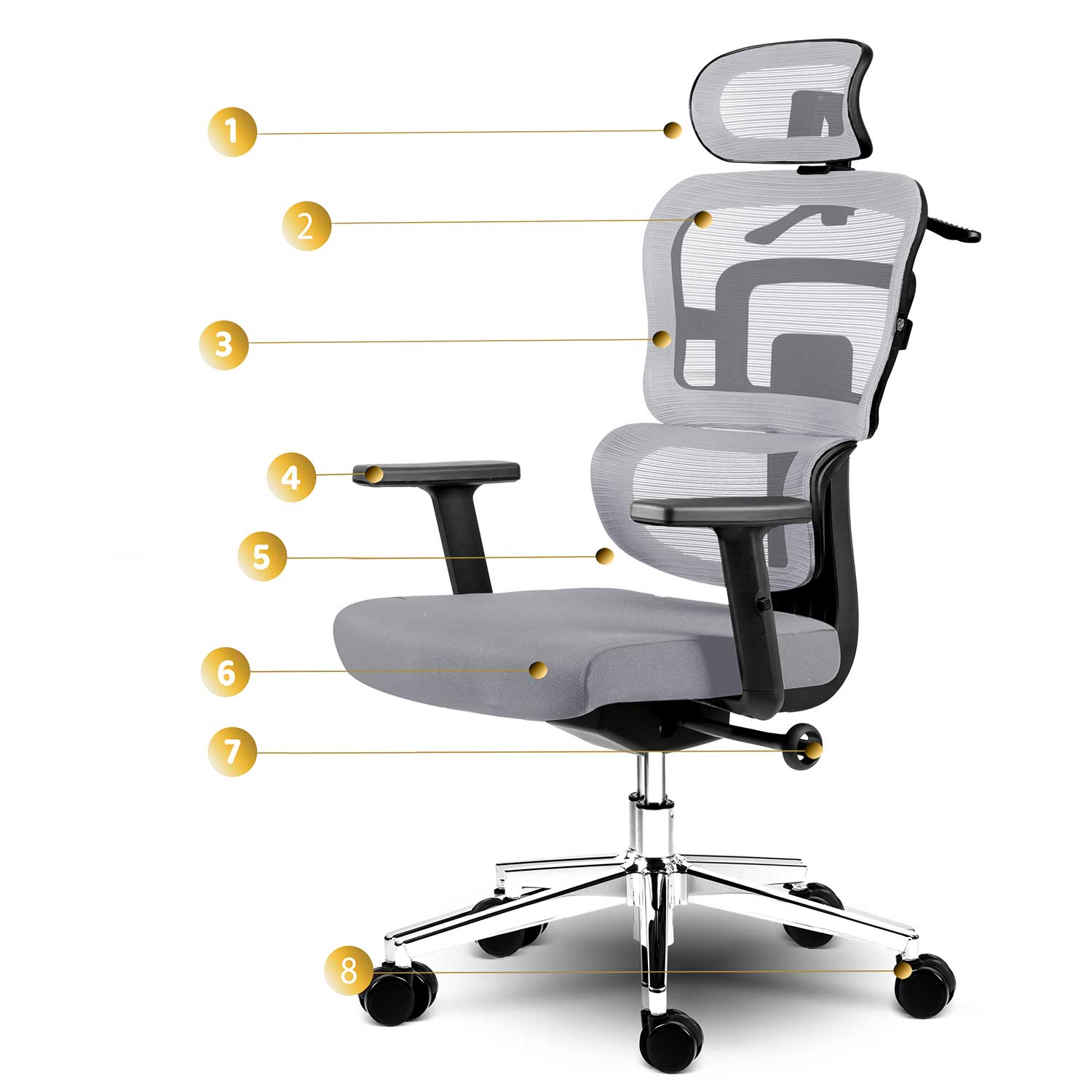 Konturovaná bedrová časť pomáha udržiavať ergonomický bezpečný postoj. Prispôsobí sa tvaru vašej postavy a zaistí pohodlie pri sedení.