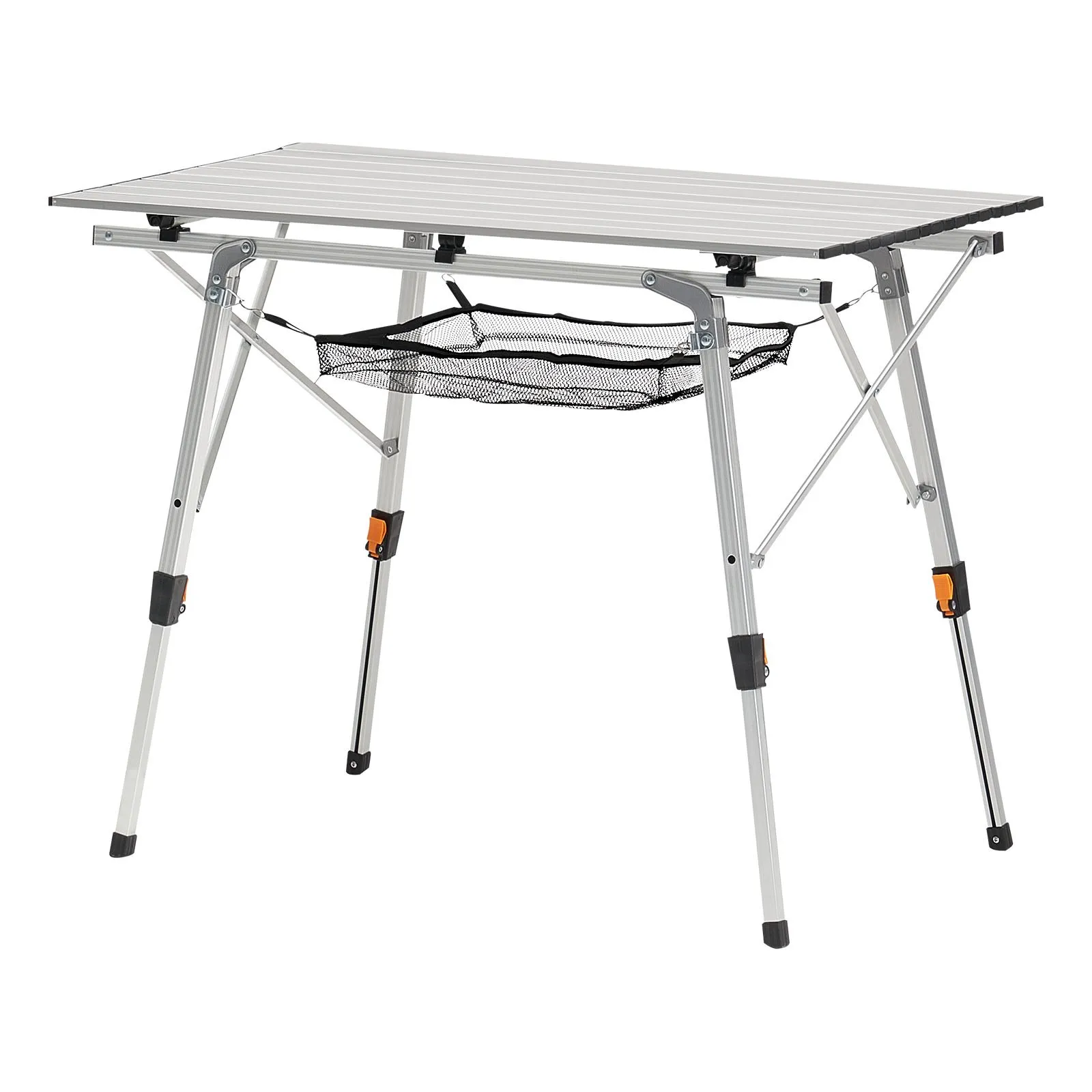 Nastavenie výšky: Kempingový stôl má dosku širokú 90 cm, ktorú je možné vďaka rýchloupínacím nohám nastaviť od 45 cm do 68 cm – čo vám umožní v priebehu niekoľkých sekúnd prepínať medzi nízkou piknikovou a jedálenskou výškou. Ľahký rám a kompaktné skladanie uľahčujú prepravu.