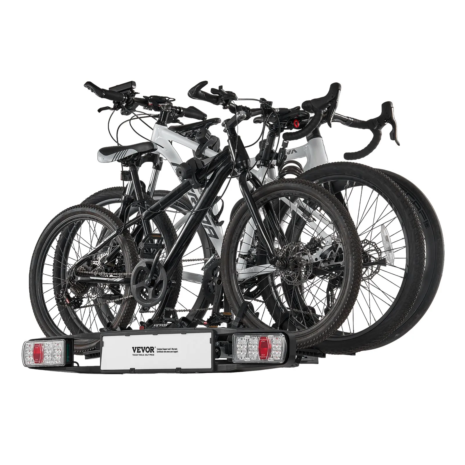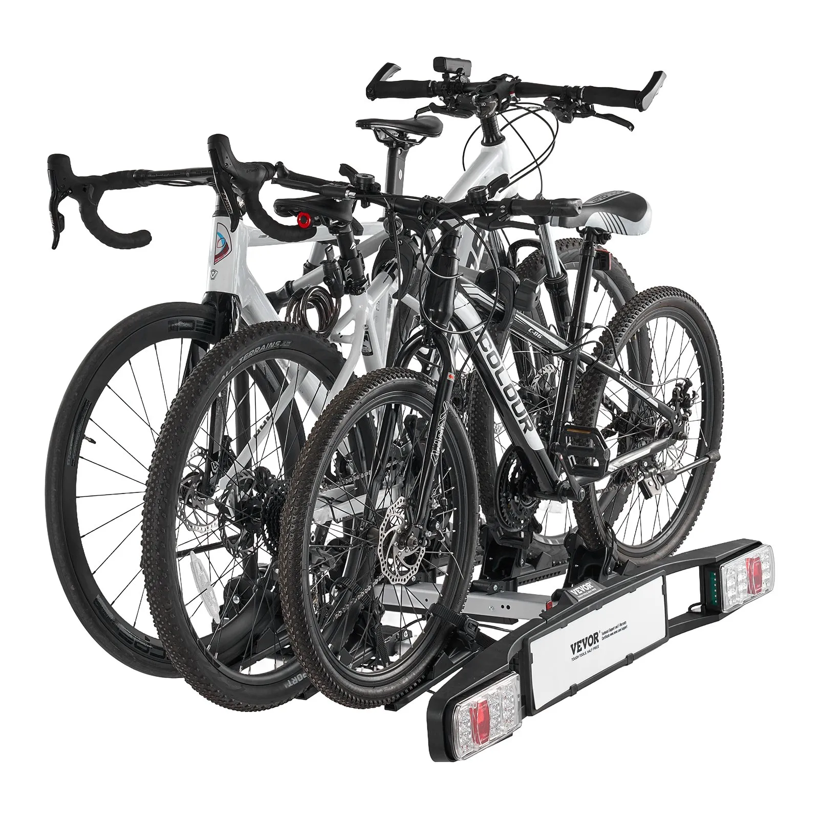 Skladací nosič bicyklov, spojovací nosič bicyklov pre 5 cm držiak, zadný nosič bicyklov pre 3 bicykle s nosnosťou do 65 kg, uzamykateľný nosič bicyklov pre elektrobicykle so zadným svetlom