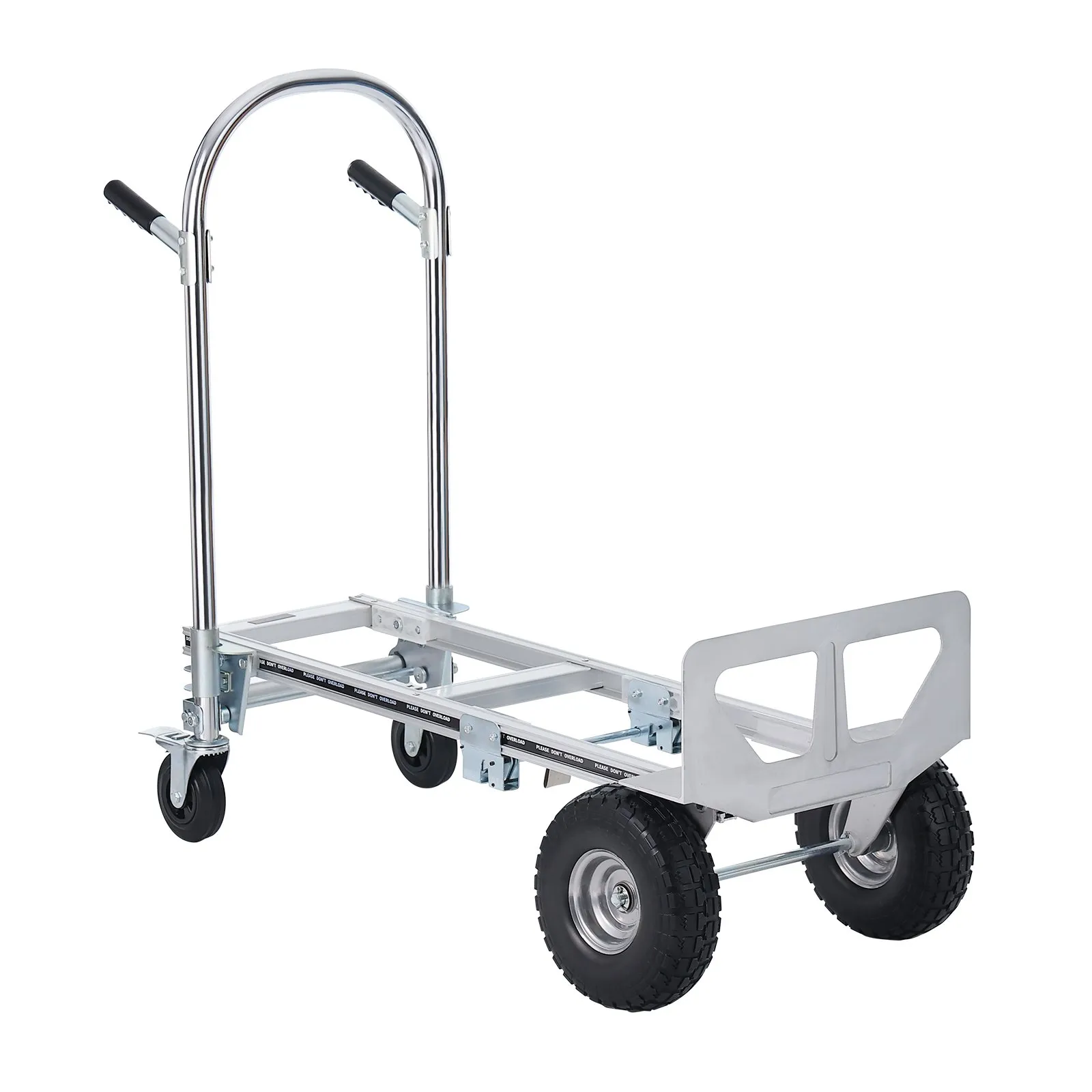 Skladací ručný vozík 2 v 1, nosnosť 318/454 kg, plošinový vozík z hliníkovej zliatiny a uhlíkovej ocele na vnútorné aj vonkajšie nakladacie a prepravné úlohy