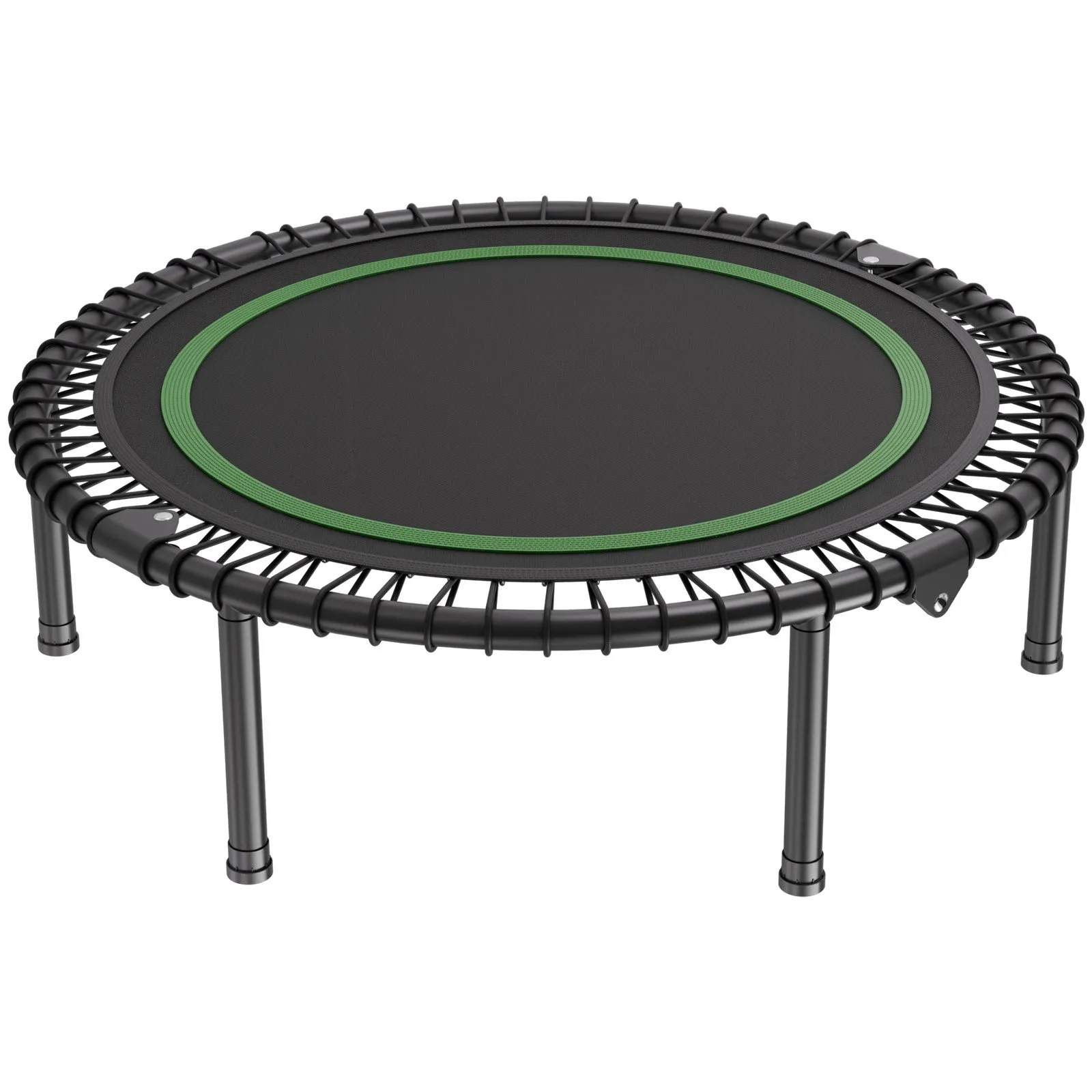 Jemnejšie a tichšie: Udržujte svoje cvičenie bez hluku vďaka protišmykovým podložkám na nohy, ktoré minimalizujú hluk a chránia vašu podlahu. Dizajn trampolíny na cvičenie zaisťuje plynulé a tiché odskoky, takže môžete cvičiť bez obáv, že rušíte svoju rodinu alebo susedov.