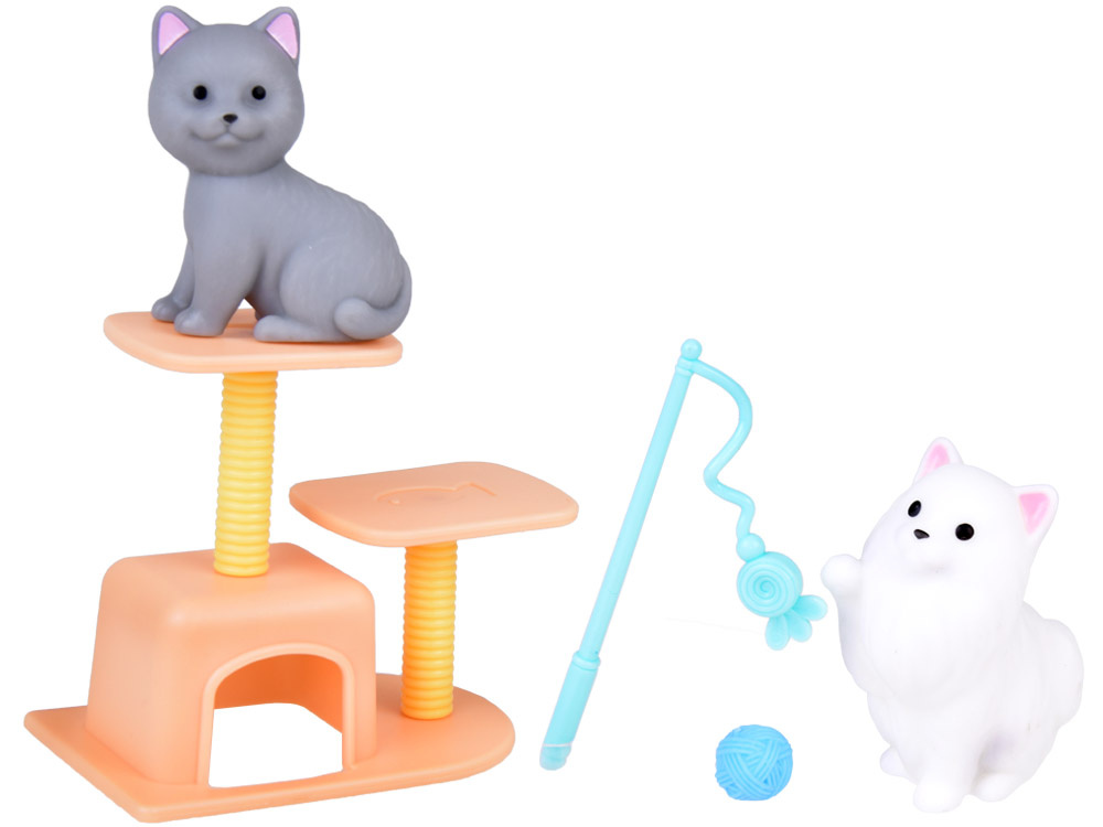 Konštrukčné prvky domu a nábytok sú vyrobené z plastu, zatiaľ čo zvieratá sú z gumy.