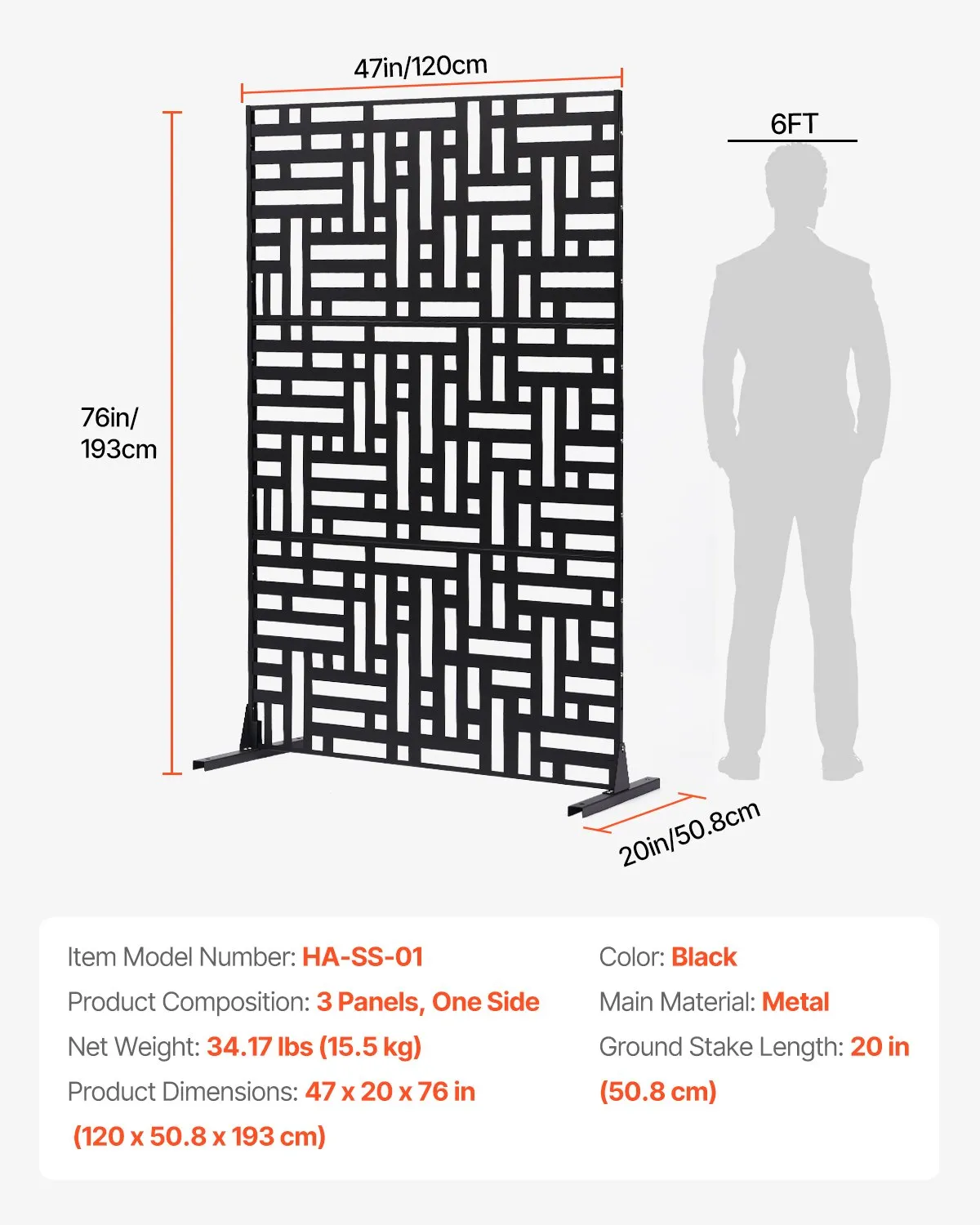 Odolná a stabilná konštrukcia: Naša vonkajšia zástena na ochranu súkromia je vyrobená z vysoko kvalitného kovu a nehrdzavejúcej ocele a má 50,8 cm (20 palcovú) (50,8 cm) podperu pre väčšiu stabilitu. Zosilnené kovové bočné rámy poskytujú extra stabilitu a robia konštrukciu veľmi odolnou voči prevráteniu, a to aj vo veterných podmienkach. Pozinkovaná kovová povrchová úprava a skrutky z nehrdzavejúcej ocele zaisťujú dlhotrvajúcu odolnosť a zabraňujú hrdzaveniu a deformácii, a to aj pri dlhodobom používaní vonku.