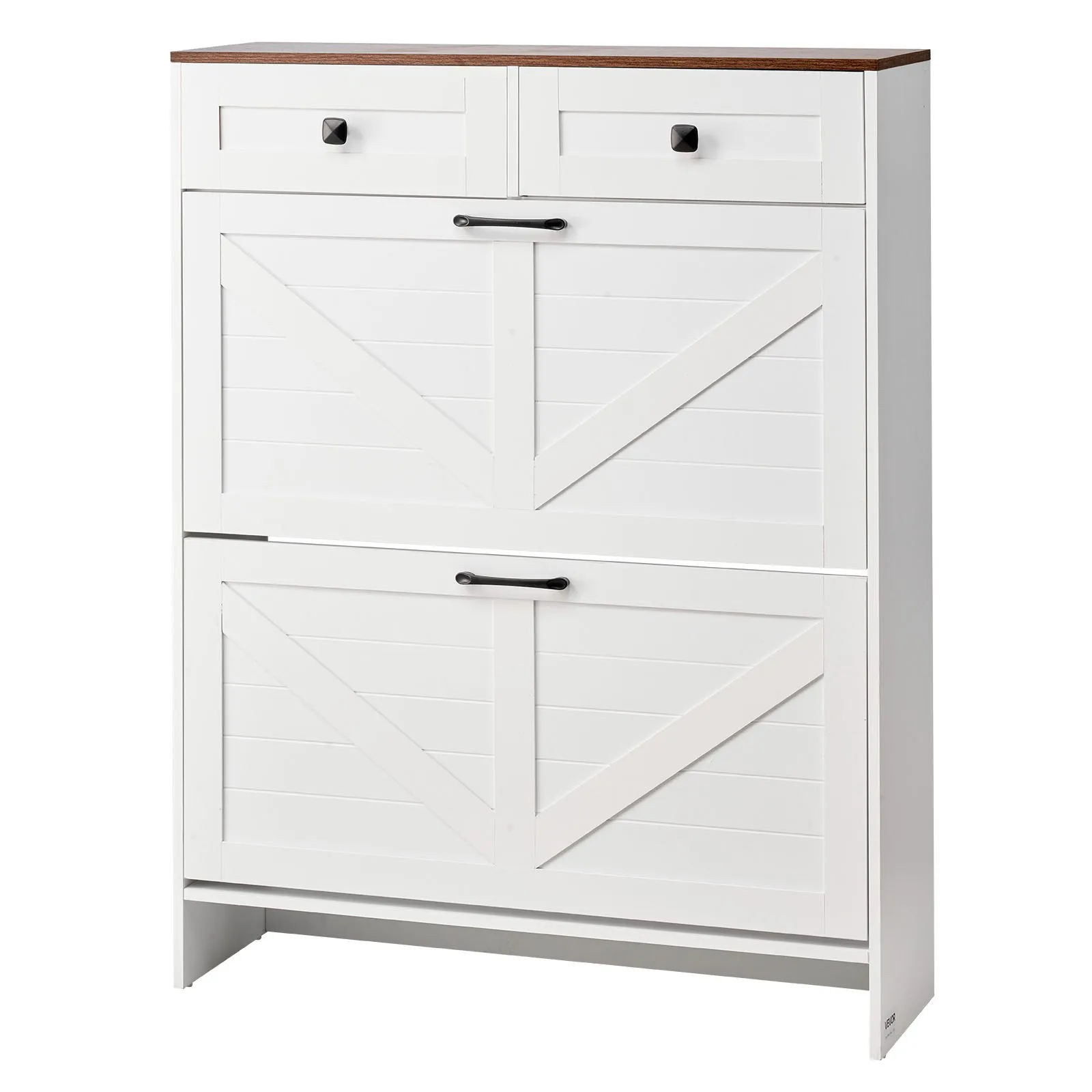 Skrinka na topánky s 2 dvierkami a zariadením proti prevráteniu a zásuvkami, priestorovo úsporný organizér na topánky, voľne stojaci organizér na topánky do vstupnej chodby, obývačky, verandy, stojan na topánky 80x24x105 cm biely