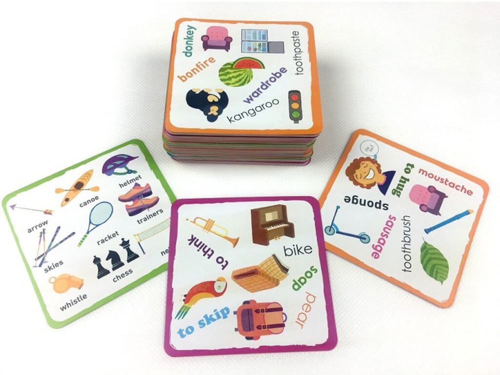 Obojstranné karty sú označené podľa toho – fialová je pre začiatočníkov, oranžová pre pokročilých hráčov. S tromi rôznymi spôsobmi hry je možné úroveň prispôsobiť veku a úrovni zručností účastníkov. Hľadajte na kartách spoločné prvky a dosiahnite titul majstra anglických slov!