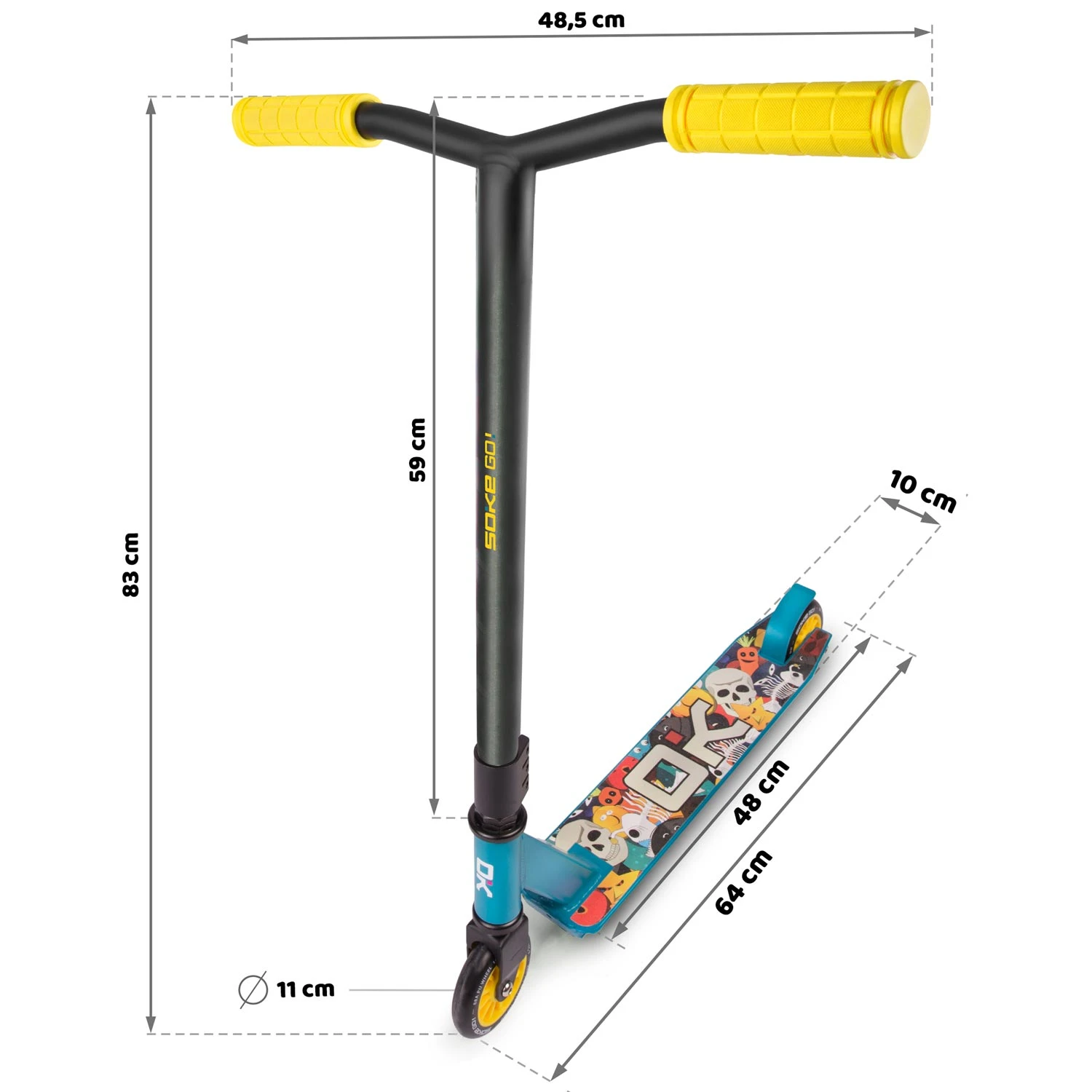 SOKE GO! Kolobežka pre freestyle jazdcov žltá a modrá