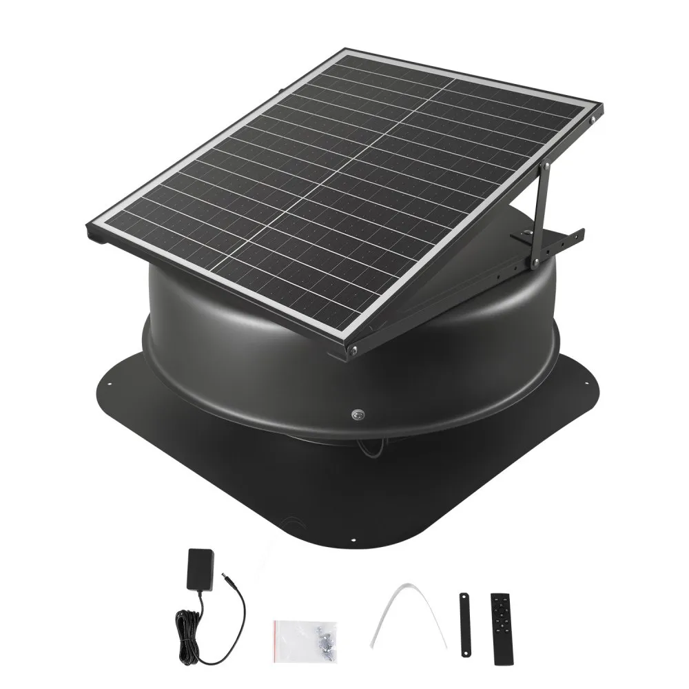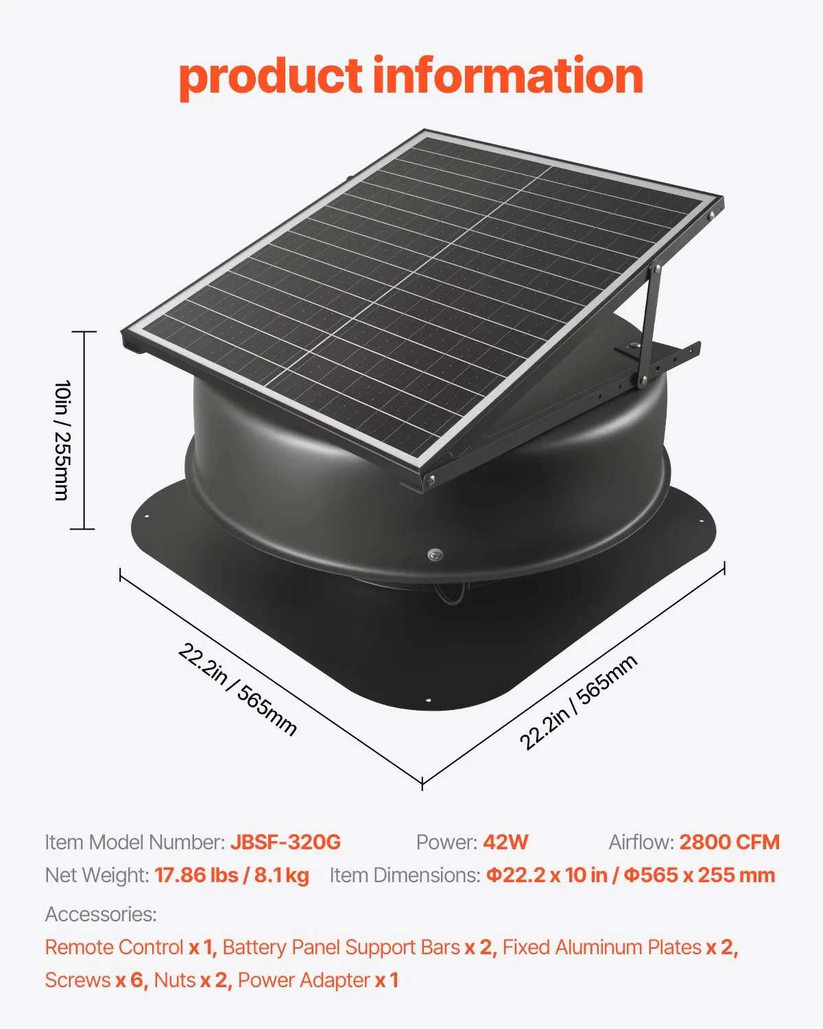 Solárna energia MPPT: Je vám v podkroví príliš horúco? 42W MPPT regulátor maximalizuje slnečné svetlo na odsávanie horúceho vzduchu z podkrovia. Je vybavený bezkartáčovým jednosmerným motorom a ponúka chladiaci výkon až 2800 CFM / 79287 l/min. Náš solárny ventilátor do podkrovia výrazne znižuje vaše náklady na chladenie a je vhodný pre kovové aj murované strechy.