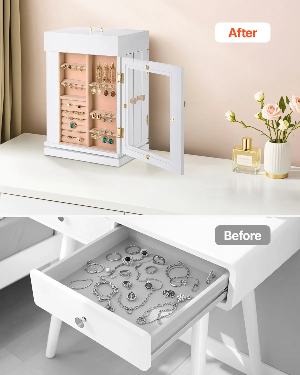• Bezproblémový 360° prístup: Organizér na šperkovnicu sa otáča o celých 360 stupňov, vďaka čomu je každý šperk ľahko viditeľný a prístupný. To vám šetrí čas a umožňuje vám viac sa sústrediť na obliekanie.