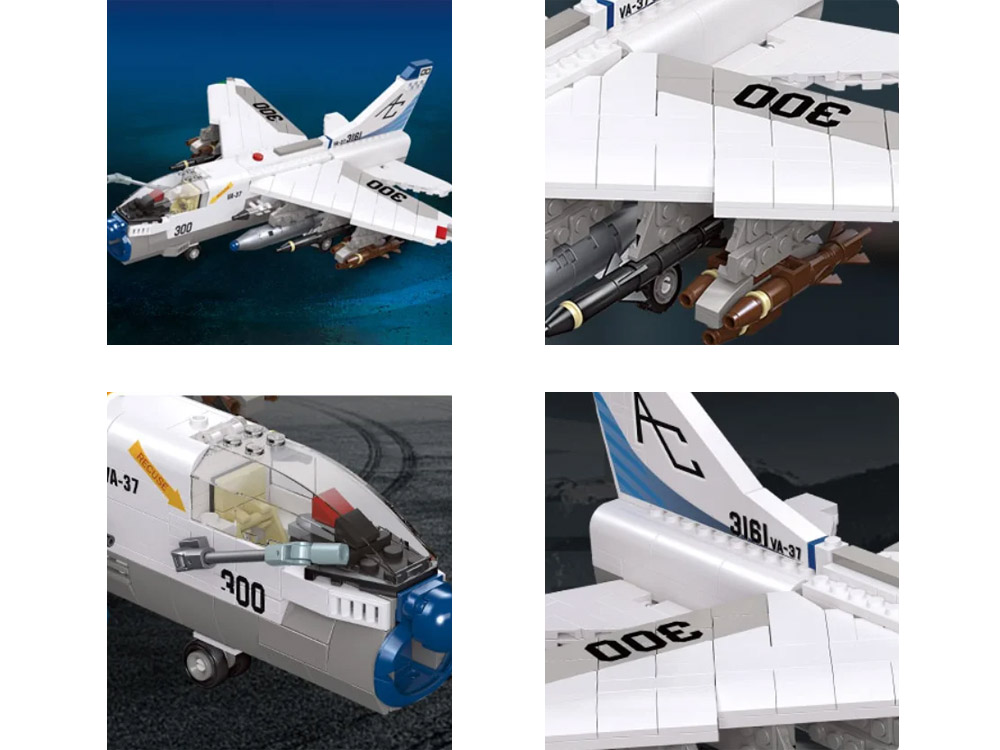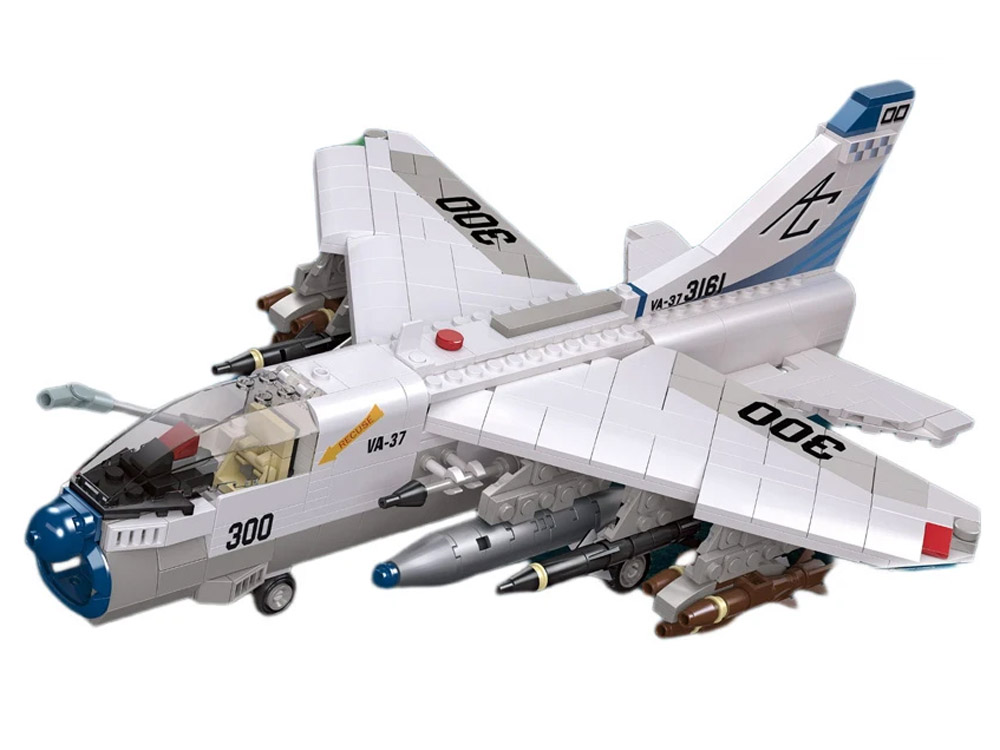 Stavebnica útočného lietadla je perfektnou voľbou pre všetkých fanúšikov týchto lietadiel. Táto 683-dielna sada vám umožňuje postaviť  americké podzvukové útočné lietadlo LTV  A-7 Corsair II . Kocky sú krásne vyrobené v bielo-sivej farebnej schéme a určite potešia každého fanúšika armády, letectva a histórie týchto lietadiel. Táto sada zaručuje nielen veľa zábavy a potešenia, ale aj rozvoj. Stavanie s kockami pozitívne ovplyvňuje koordináciu ruka-oko dieťaťa. Hotový model sa môže stať dekoratívnym doplnkom detskej izby alebo jedinečným doplnkom zbierky!