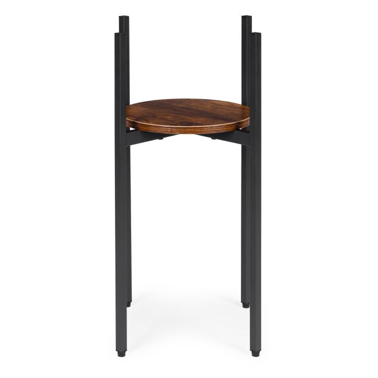 Tento stojaci stojan na rastliny je praktickým a štýlovým riešením v modernom industriálnom štýle . Jeho práškovo lakovaný oceľový rám zaisťuje vysokú odolnosť a odolnosť voči korózii a mechanickému poškodeniu. Drevená polica s povrchovou úpravou s efektom dreva dodáva stojanu eleganciu a prírodný charakter. Jeho stabilný tvar a protišmykové nožičky chránia podlahu, čím zabezpečujú, že stojan je bezpečne umiestnený a počas používania sa neposúva. Maximálna nosnosť 20 kg umožňuje bezpečné vystavenie rastlín, byliniek alebo dekoratívnych predmetov. Jeho minimalistický dizajn robí zo stojana perfektné riešenie pre každý moderný interiér a prináša doň sviežosť a estetický poriadok.