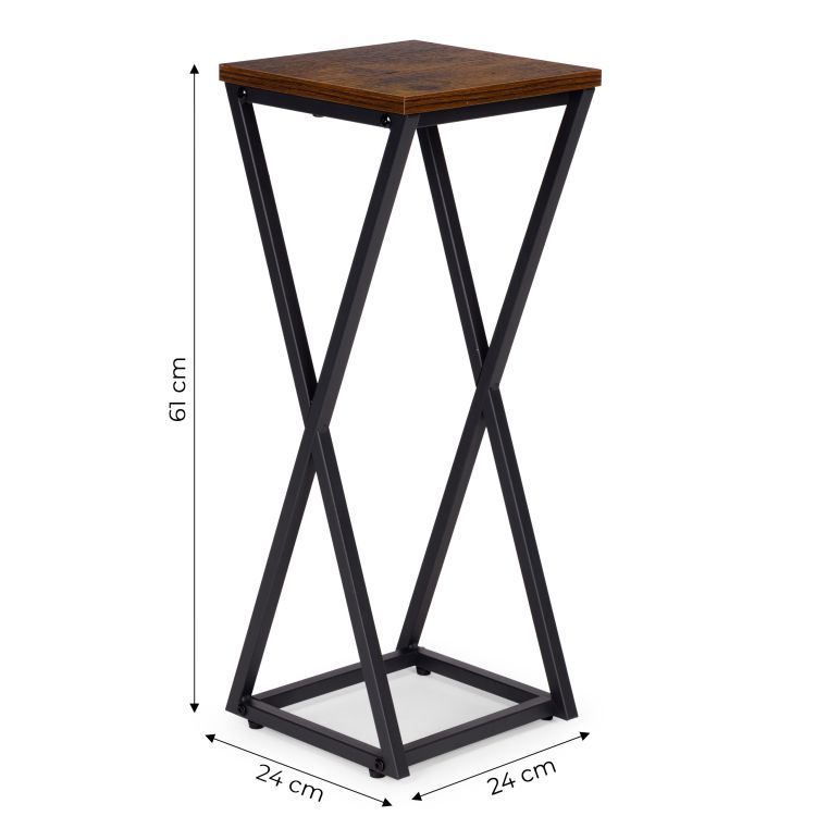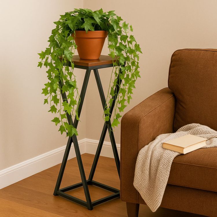 Tento stojaci stojan na rastliny je praktickým a štýlovým riešením v modernom industriálnom štýle . Jeho práškovo lakovaný oceľový rám zaisťuje vysokú odolnosť a odolnosť voči korózii a mechanickému poškodeniu. Drevená polica s povrchovou úpravou s efektom dreva dodáva stojanu eleganciu a prírodný charakter. Jeho stabilný tvar a protišmykové nožičky chránia podlahu a zaisťujú bezpečnosť a istotu stojana počas používania. Maximálna nosnosť 5 kg umožňuje bezpečné vystavenie rastlín, byliniek a dekoratívnych predmetov. Jeho minimalistický dizajn robí zo stojana perfektné riešenie pre každý moderný interiér a prináša doň sviežosť a estetický poriadok.