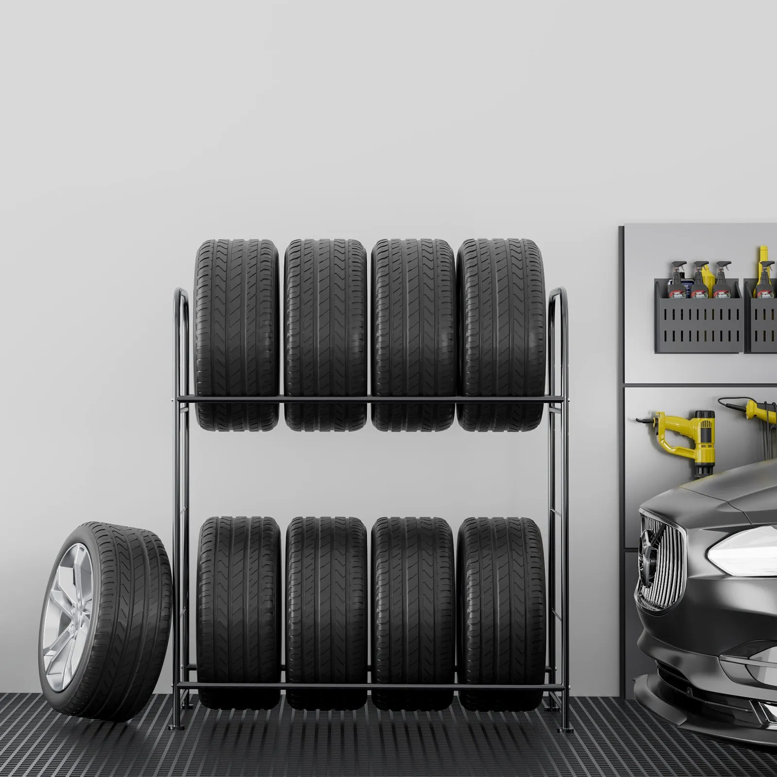 Maximalizujte svoj priestor: Vďaka dvojúrovňovému dizajnu ponúka tento nastaviteľný stojan na pneumatiky dostatok priestoru na uskladnenie až 8 štandardných pneumatík. Udrží vaše pneumatiky úhľadne uložené, maximalizuje váš úložný priestor a zaistí upratanú garáž alebo dielňu.