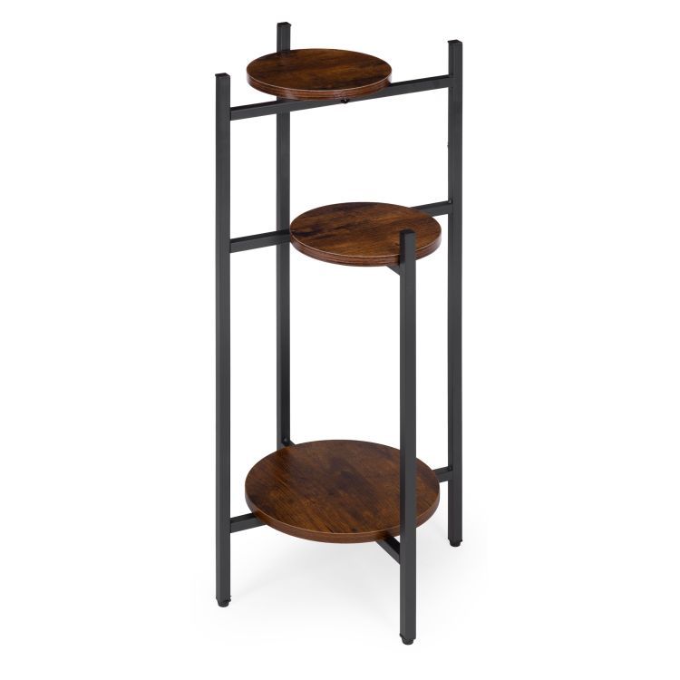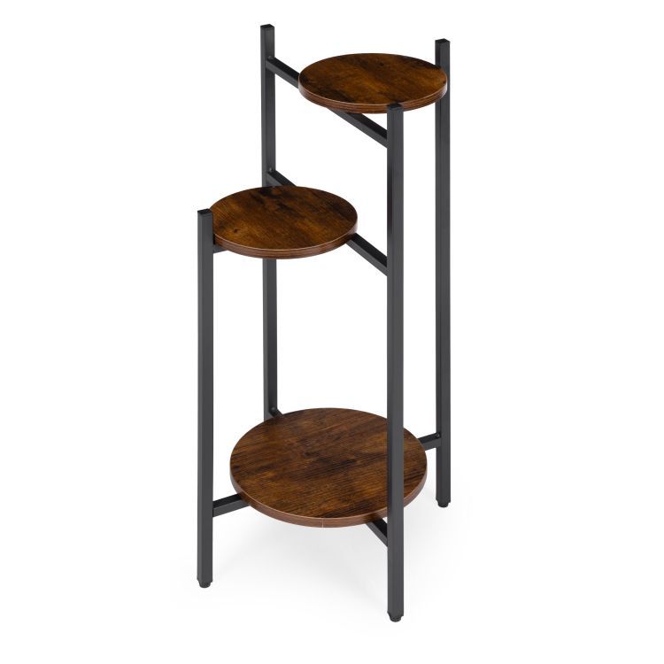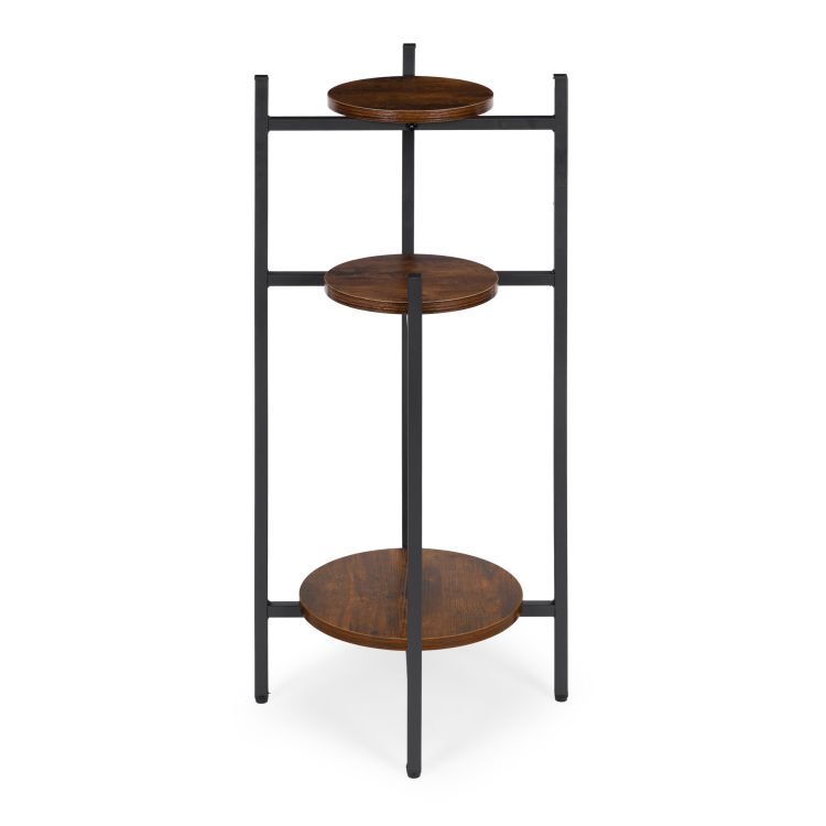 Tento stojaci stojan na rastliny je praktickým a štýlovým riešením v modernom industriálnom štýle . Jeho práškovo lakovaný oceľový rám zaisťuje vysokú odolnosť a odolnosť voči korózii a mechanickému poškodeniu. Tri drevotrieskové police s povrchovou úpravou s efektom dreva dodávajú stojanu eleganciu a prírodný charakter. Jeho stabilná konštrukcia a protišmykové nožičky chránia podlahu a zaisťujú bezpečnosť a istotu stojana počas používania. Maximálna nosnosť 15 kg umožňuje bezpečné vystavenie rastlín, byliniek a dekoratívnych predmetov. Jeho minimalistický dizajn robí zo stojana perfektné riešenie pre každý moderný interiér a prináša doň sviežosť a estetický poriadok.