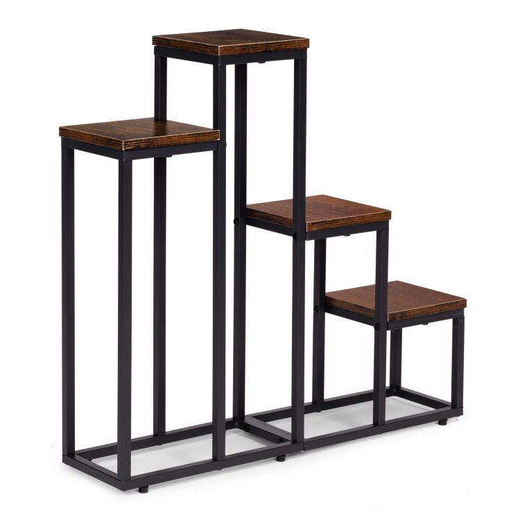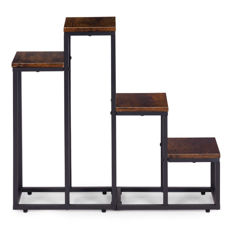 Tento stojaci stojan na rastliny je praktickým a štýlovým riešením v modernom industriálnom štýle . Jeho práškovo lakovaný oceľový rám zaisťuje vysokú odolnosť a odolnosť voči korózii a mechanickému poškodeniu. Štyri drevotrieskové police s povrchovou úpravou s efektom dreva dodávajú stojanu eleganciu a prírodný charakter. Jeho stabilná konštrukcia a protišmykové nožičky chránia podlahu a zaisťujú bezpečnosť a istotu stojana počas používania. Maximálna nosnosť 5 kg umožňuje bezpečné vystavenie rastlín, byliniek a dekoratívnych predmetov. Jeho minimalistický dizajn robí zo stojana perfektné riešenie pre každý moderný interiér a prináša doň sviežosť a estetický poriadok.