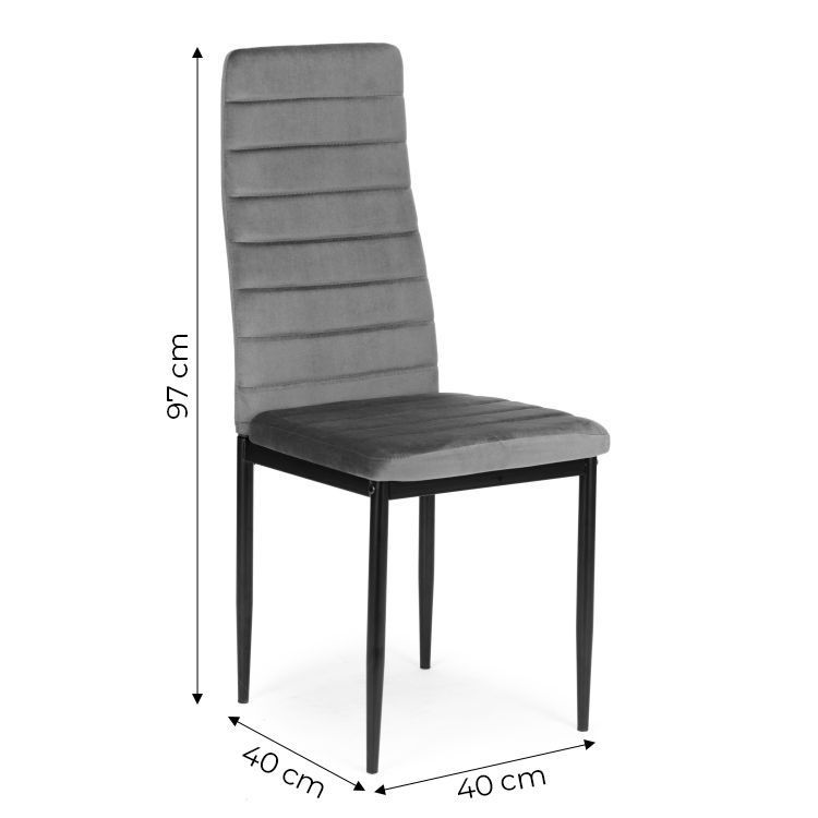 Táto sada obsahuje štyri elegantné stoličky čalúnené mäkkou látkou. Stoličky majú tvarované, vysoké operadlá pre maximálne pohodlie . Konštrukciu podopierajú práškovo lakované oceľové nohy s ochrannými nožičkami , ktoré chránia podlahu pred poškriabaním. Ich moderný dizajn a všestranné farby z nich robia ideálne riešenie do obývacích izieb , jedální a verejných priestorov, ako sú kancelárie a reštaurácie . Vďaka robustnej konštrukcii každá stolička unesie zaťaženie až 120 kg .