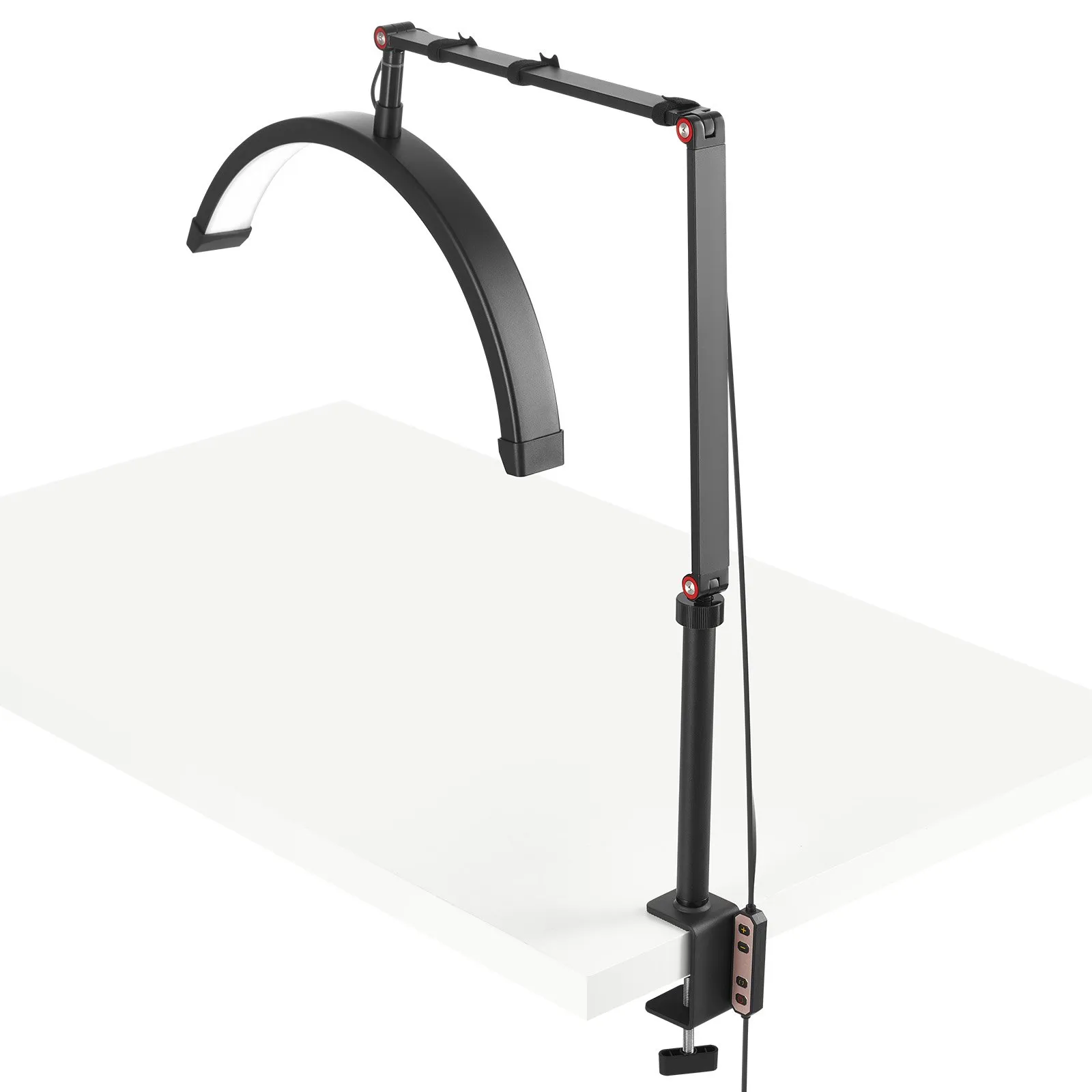 • Komplexné osvetlenie: Stolová lampa v tvare polmesiaca poskytuje rovnomernejšie osvetlenie a minimalizuje tiene a odlesky. Zaisťuje jasný a neskreslený pohľad pri akejkoľvek kozmetickej alebo nechtovej starostlivosti a ponúka optimálnu viditeľnosť pre precíznu prácu.