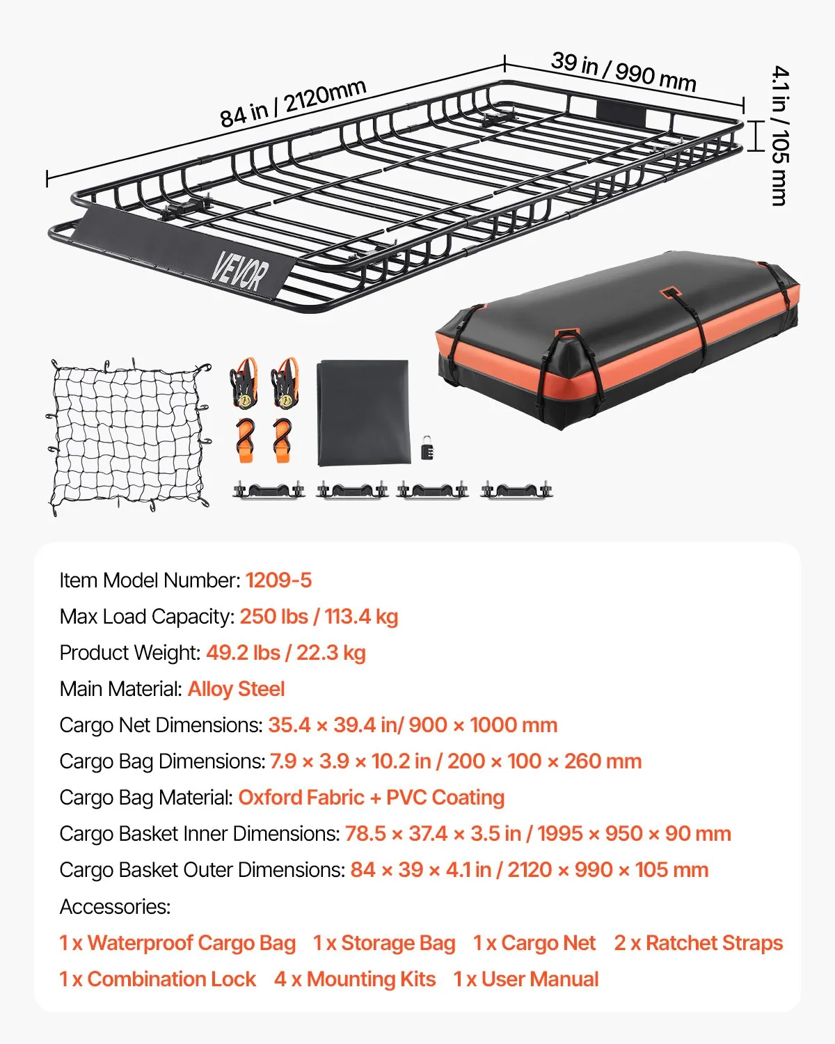 Viac batožinového priestoru: Strešný nosič s rozmermi 212 x 99 cm (84 x 39 palcov) unesie až 113,4 kg (250 libier) a poskytne vášmu vozidlu dodatočnú úložnú kapacitu. Ideálne na batožinu, športové vybavenie, kempingové vybavenie a ďalšie veci. Ochranný plot s výškou 105 mm (4,1 palca) znižuje hluk vetra a odpor vzduchu počas jazdy.