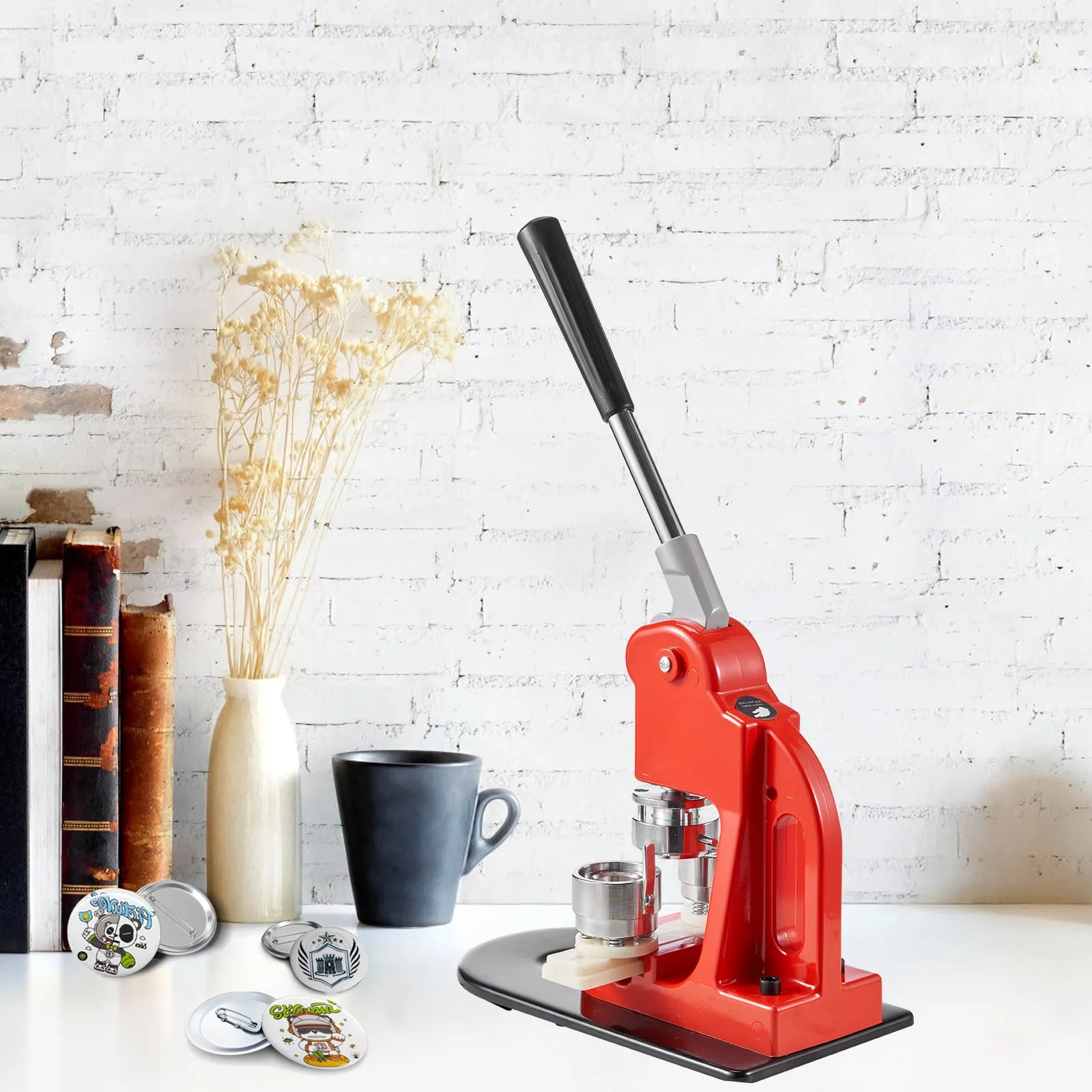 Jednoduché použitie: Používateľská príručka obsahuje podrobné pokyny, ktoré vysvetľujú, ako nainštalovať formy a vytvoriť odznaky. Ovládanie je jednoduché. Verte nám, rýchlo sa naučíte! Vďaka robustnej konštrukcii bude vaša výroba odznakov bezpečnejšia a pohodlnejšia. Pripravte sa začať s tvorbou!