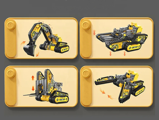 Objavte úžasnú stavebnicu 4 v 1 – Malé stroje na špeciálne účely! Táto jedinečná kolekcia umožňuje vášmu dieťaťu stať sa inžinierom a staviteľom štyroch rôznych vozidiel, ktoré skutočne fungujú!
