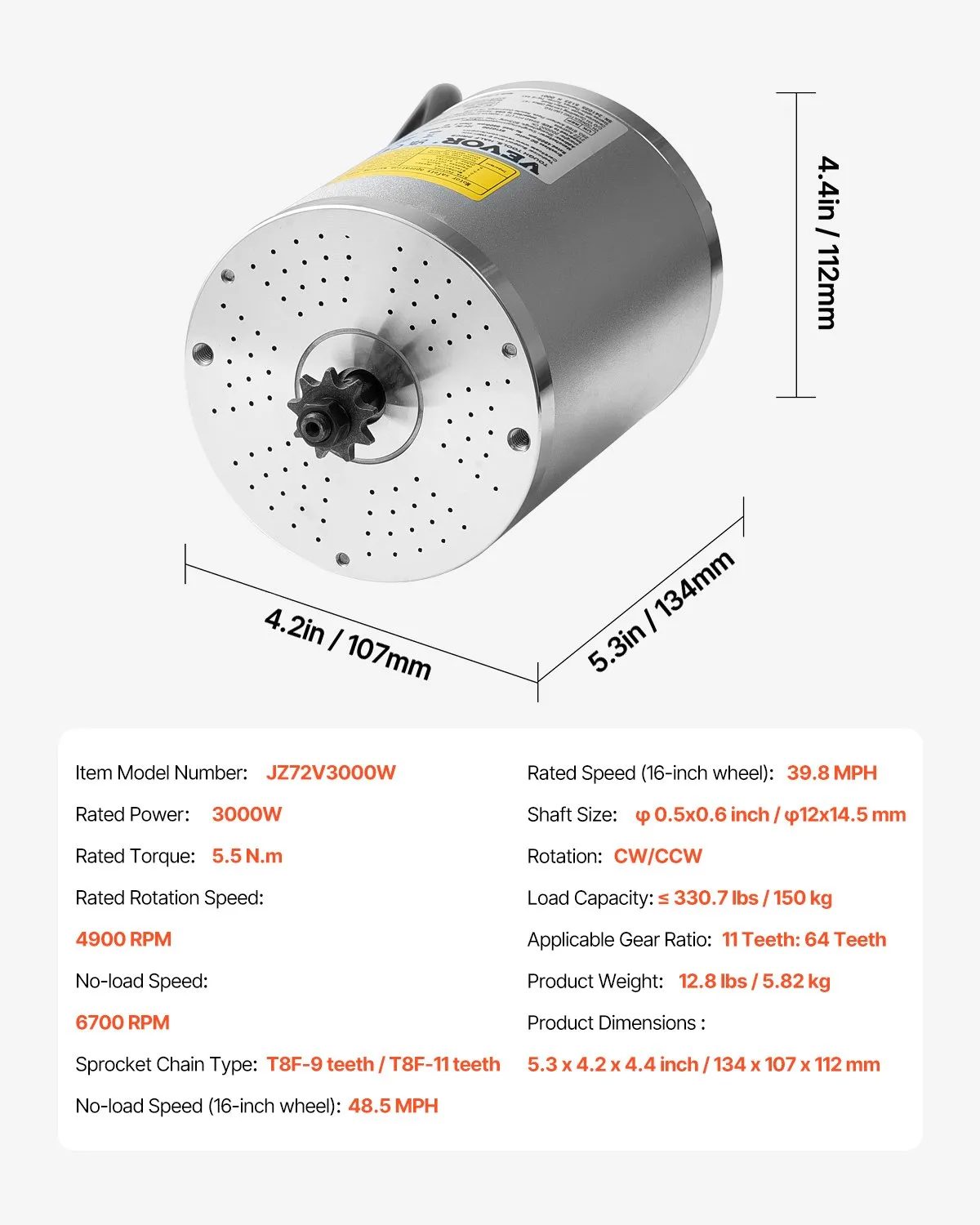 Jednoduchá inštalácia svojpomocne: Balenie obsahuje: 1 x 72V 3000W bezkartáčový motor, 1 x ovládač motora, 1 x sadu montážneho príslušenstva a 1 x používateľskú príručku. Táto sada motora obsahuje podrobný návod na zapojenie, vďaka čomu je ideálna pre nadšencov svojpomocne a hobbyistov, ktorí chcú vylepšiť alebo prispôsobiť svoje elektrické vozidlá.