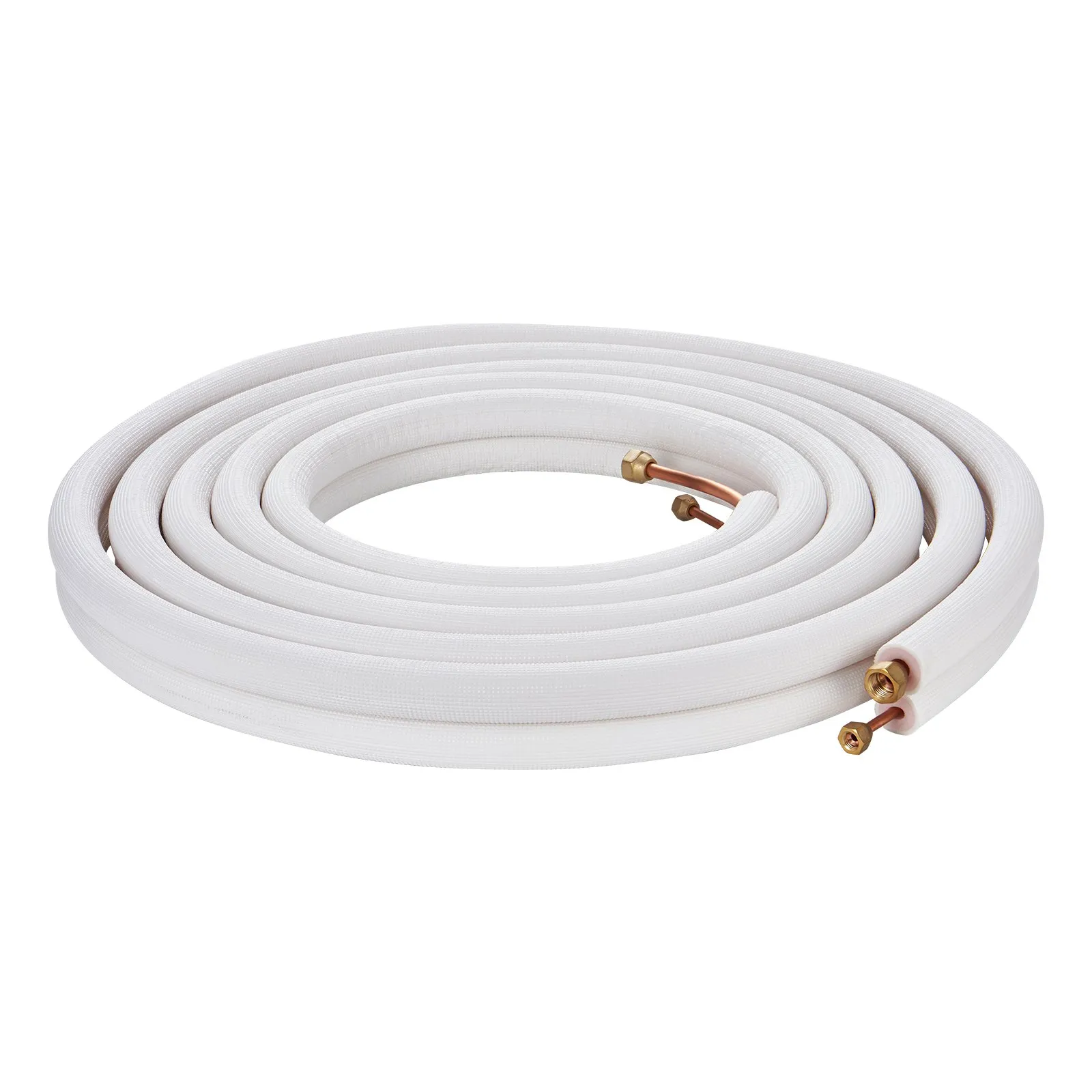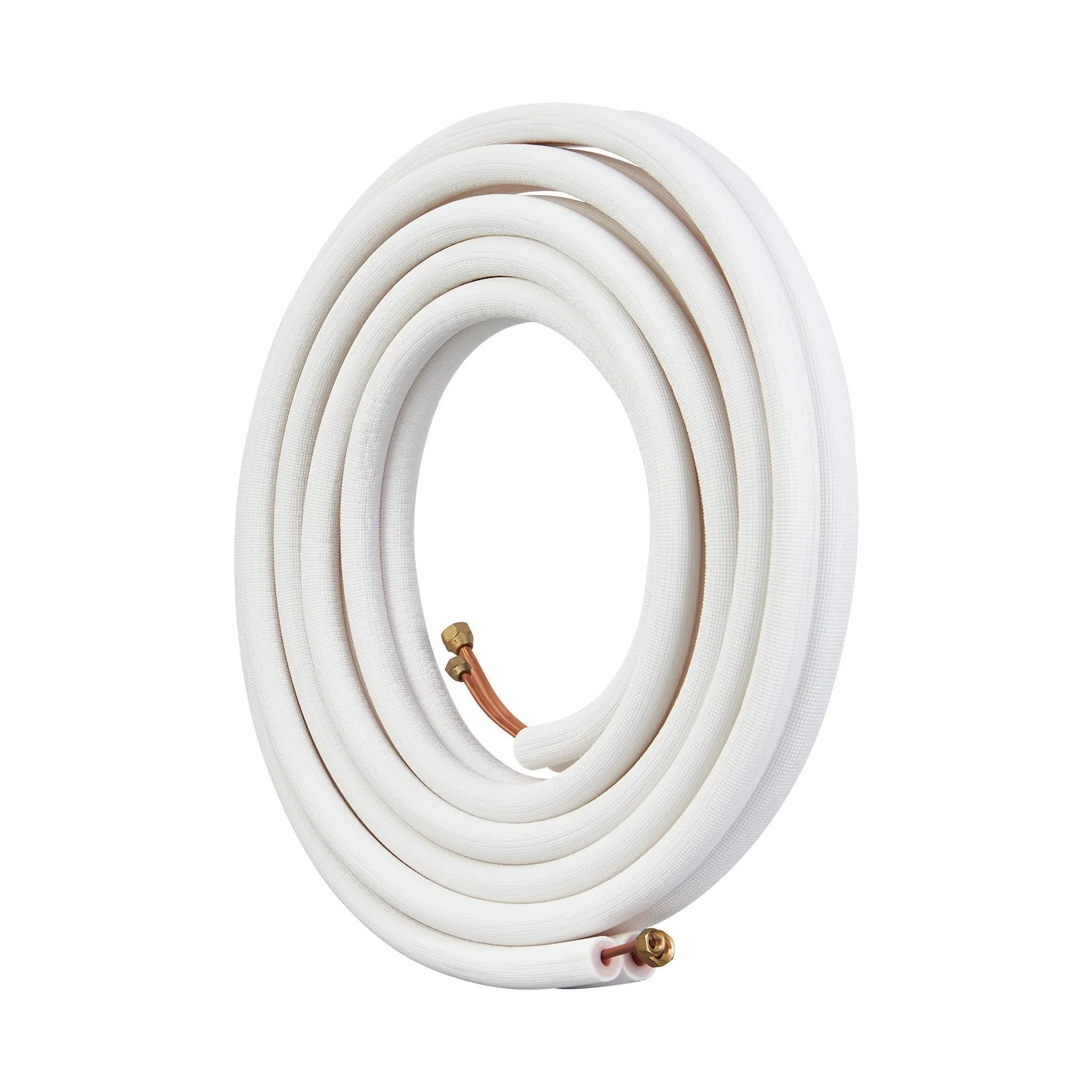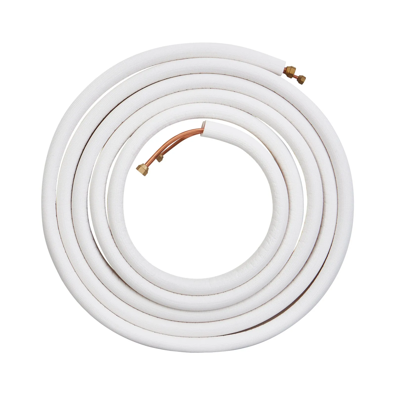 Dvojité potrubia pre vysoký a nízky tlak: Obsahuje vysokotlakové potrubia s priemerom 6,35 mm (1/4 palca) a nízkotlakové potrubia s priemerom 9,53 mm (3/8 palca), kompatibilné s delenými klimatizáciami od 0 do 12 000 BTU, špeciálne navrhnuté pre mini delené klimatizácie.