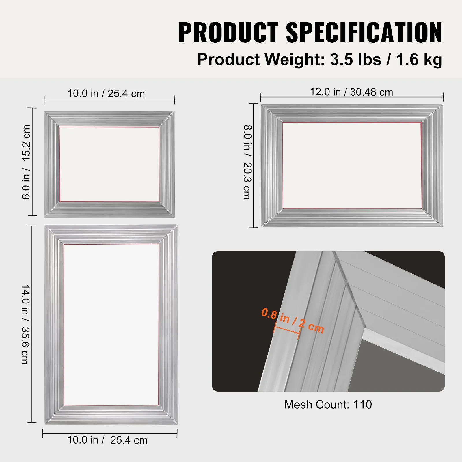 Súprava na sieťotlač, 3 ks. Hliníkové rámy na sieťotlač 152,4 x 254 mm/203,2 x 304,8 mm/254 x 355,6 mm, 110 mesh, 5 stierok a fólií na trblietavú a sieťotlač na tričká, DIY tlač atď.
