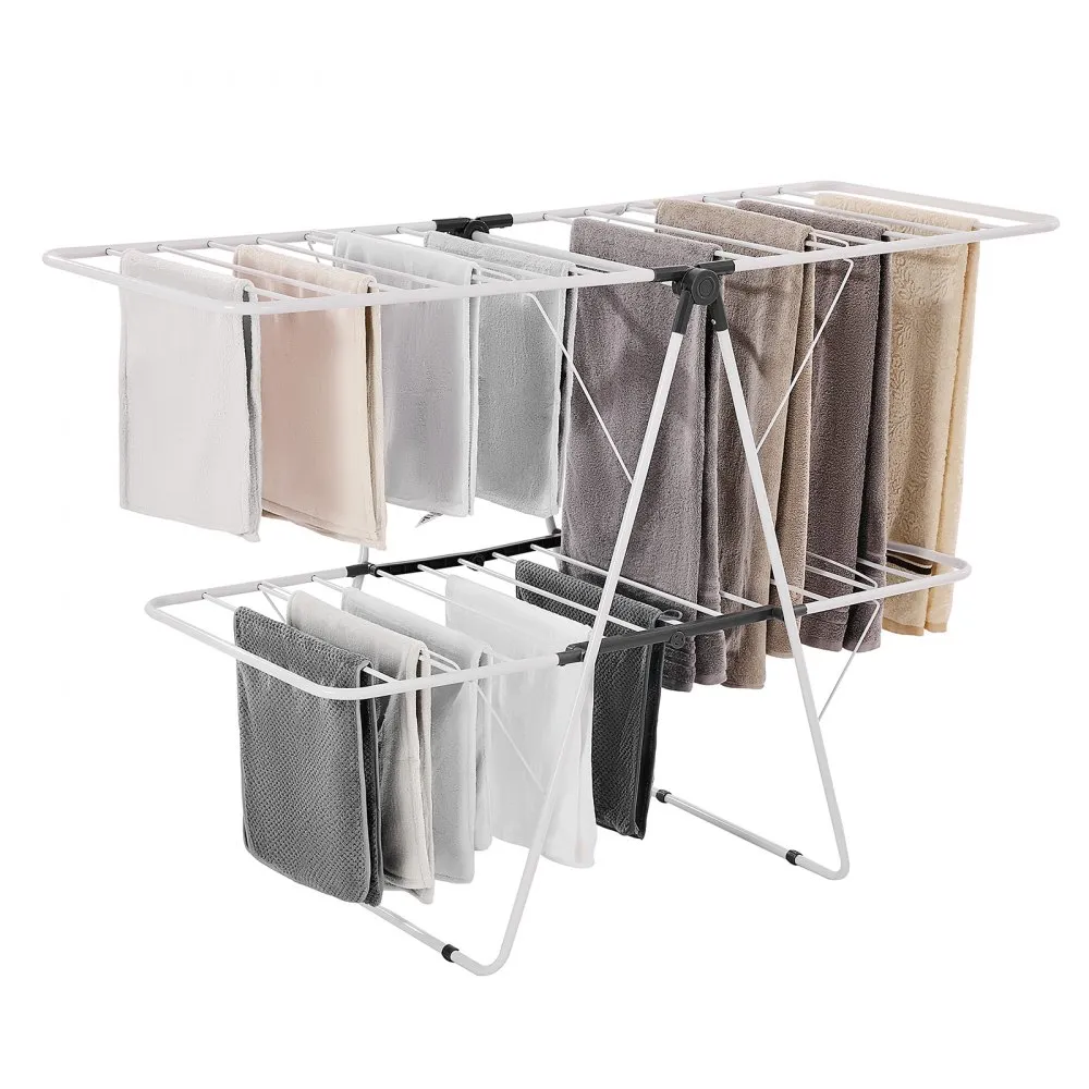 • Veľká kapacita: Priestranná dvojposchodová dvojkrídlová konštrukcia s 31 závesnými tyčami poskytuje dostatok priestoru na zavesenie a sušenie oblečenia, nohavíc, šatiek, uterákov, ponožiek a prikrývok.