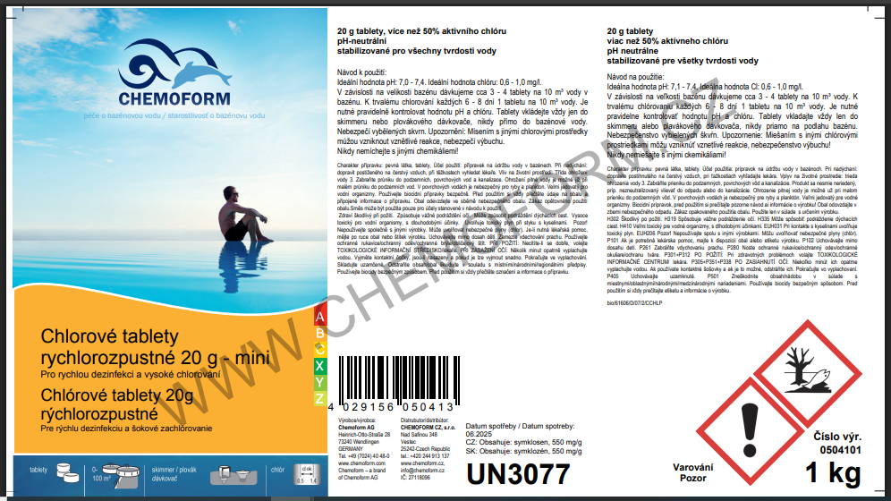 – 20 g tablety, viac než 50% aktívneho chlóru