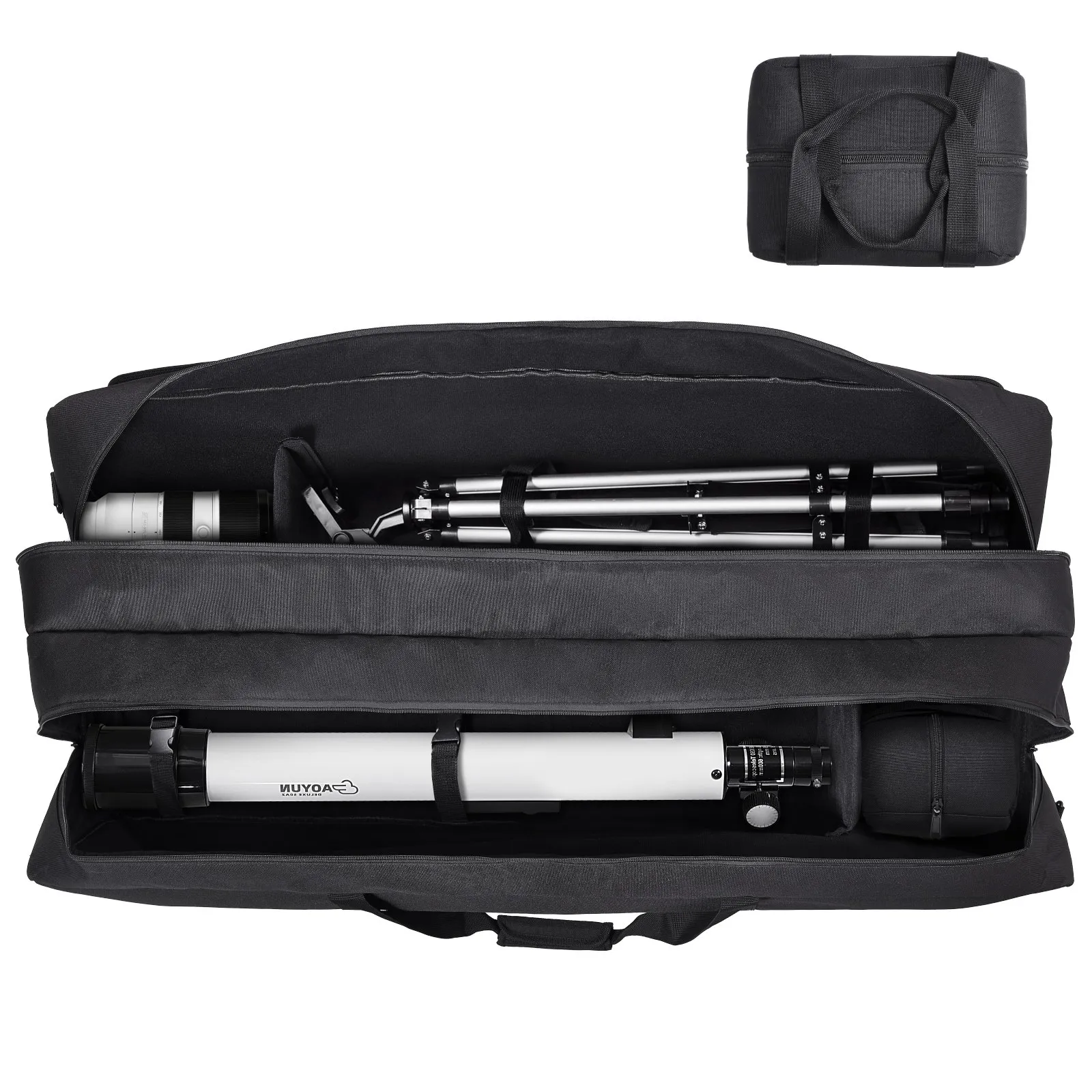 Štvorvrstvová ochrana: Taška na teleskop je vyrobená zo 4 vysokokvalitných materiálov, vrátane pevnej a odolnej oxfordskej tkaniny 900D, vodeodolného a vlhkuodolného PU povlaku, nárazuvzdornej perleťovej bavlnenej podšívky a mäkkej zamatovej vnútornej podšívky, ktoré poskytujú vynikajúcu ochranu teleskopu v každom smere.
