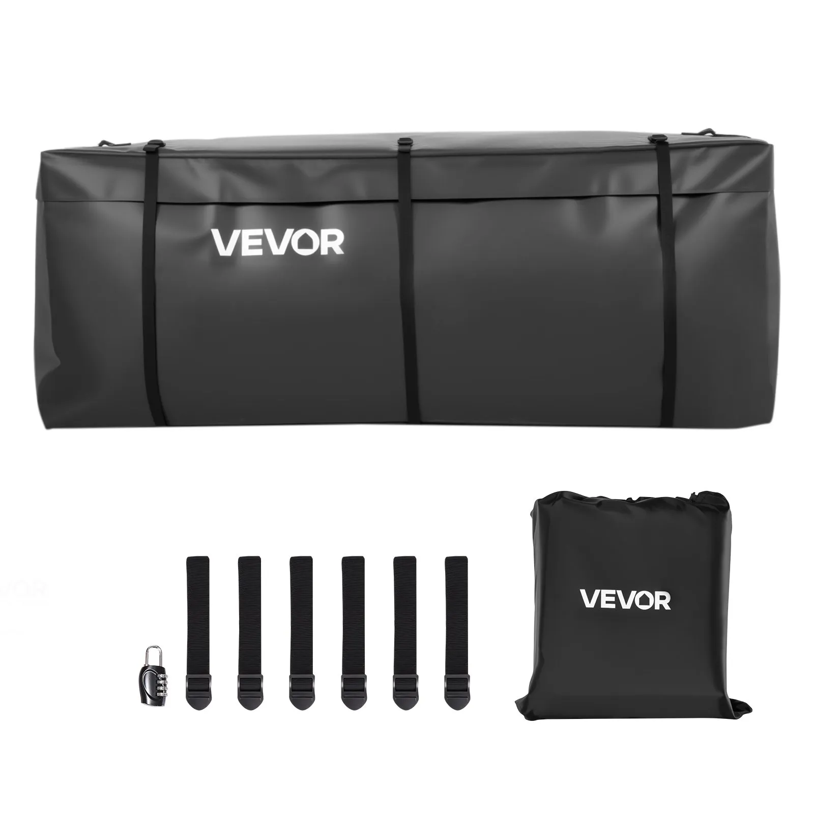 Taška na ťažné zariadenie vyrobená z vodotesného PVC 840D (0,453 m³), nosič batožiny na korbu nákladného auta so zosilnenými popruhmi pre autá, SUV, dodávky, čierna