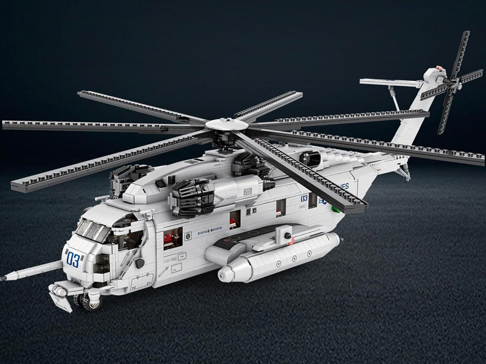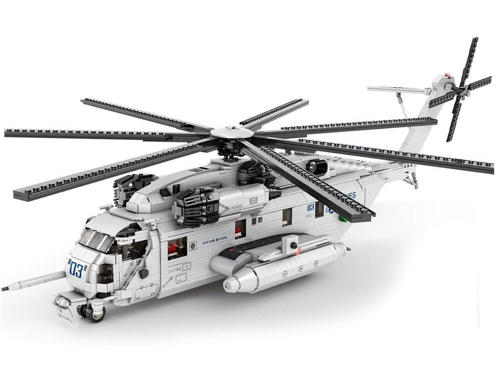 Technické bloky transportného vrtuľníka CH53, 2192 kusov, sú replikou amerického ťažkého transportného vrtuľníka, používaného aj na záchranné a pristávacie operácie.